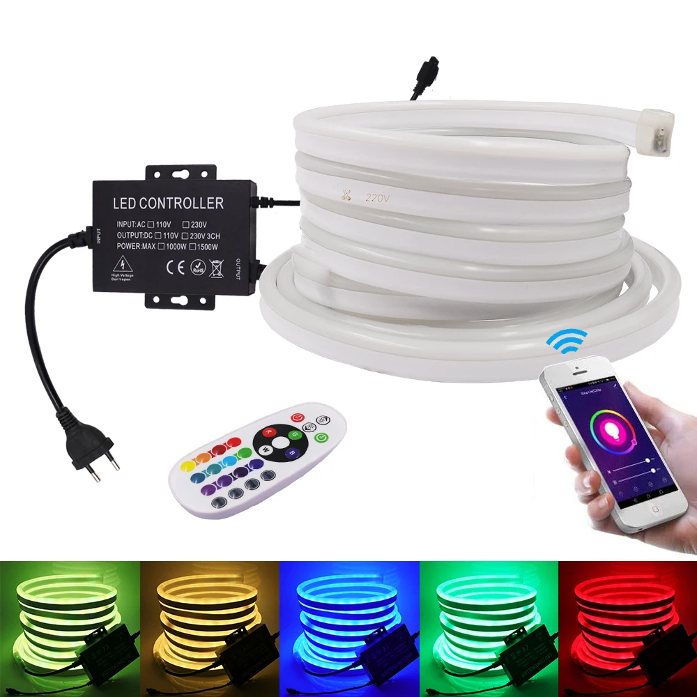 WiFi RGB неоновый светодиодный светильник 220 В 110 В водонепроницаемый гибкий светильник s неоновая лента 5 м 10 м 20 м 50 м 100 м Светодиодная лампа Wifi контроллер