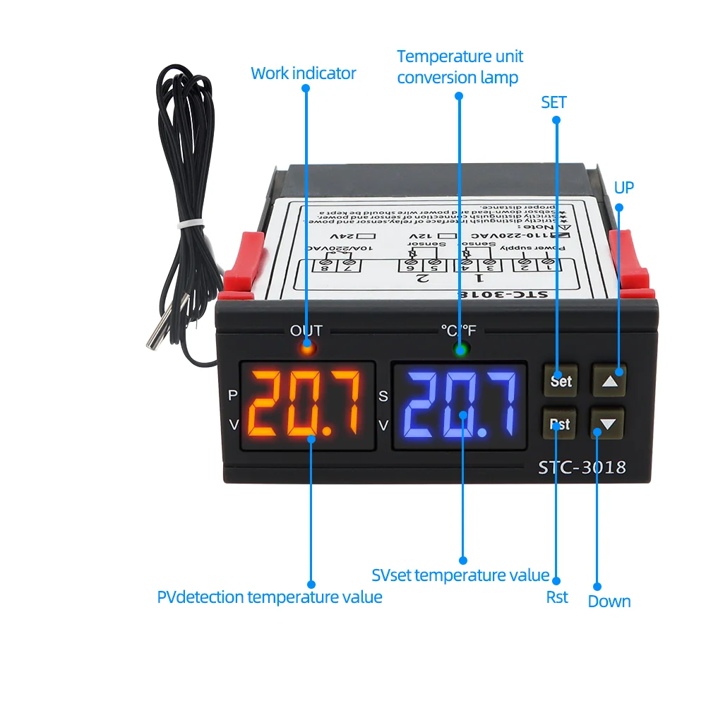 STC-3018, цифровой терморегулятор, терморегулятор, термометр для инкубатора, переключатель управления, 10A, 12 В, 24 В, 220 В, 40% скидкаОсобенности:Автоматическое преобразование режима охлаждения и нагрева