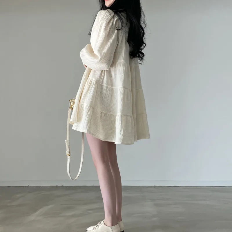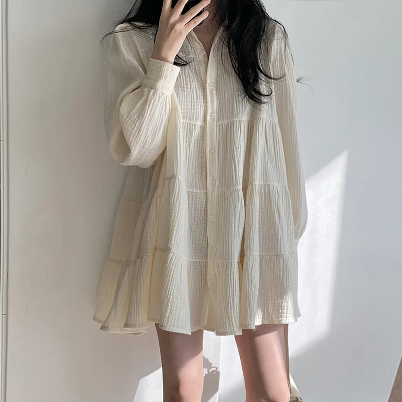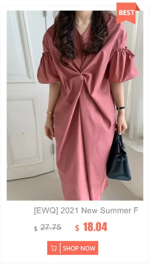 Женское однобортное платье-трапеция EWQ, повседневное свободное однотонное плиссированное платье с отложным воротником и пышными рукавами в минималистском стиле, осень 2022