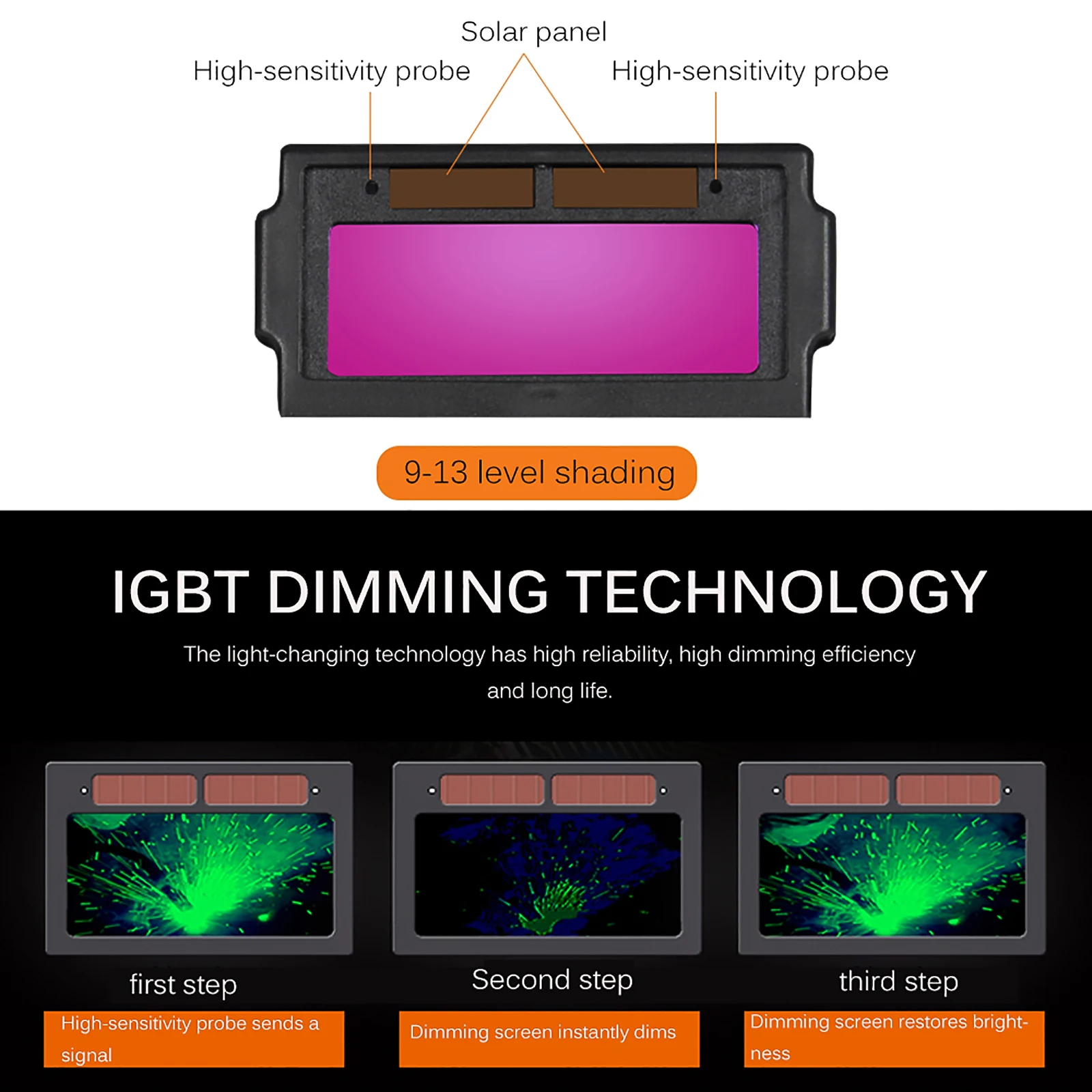 Встроенный датчик может автоматически изменить цвет стекла в течение нескольких секунд, чтобы защитить ваш глаз от вредного светильник.