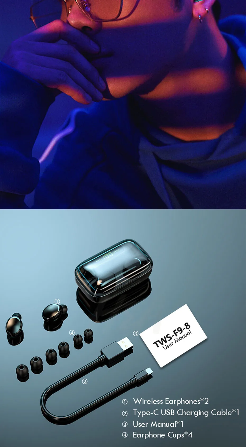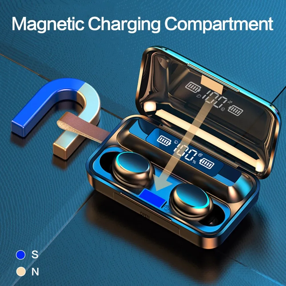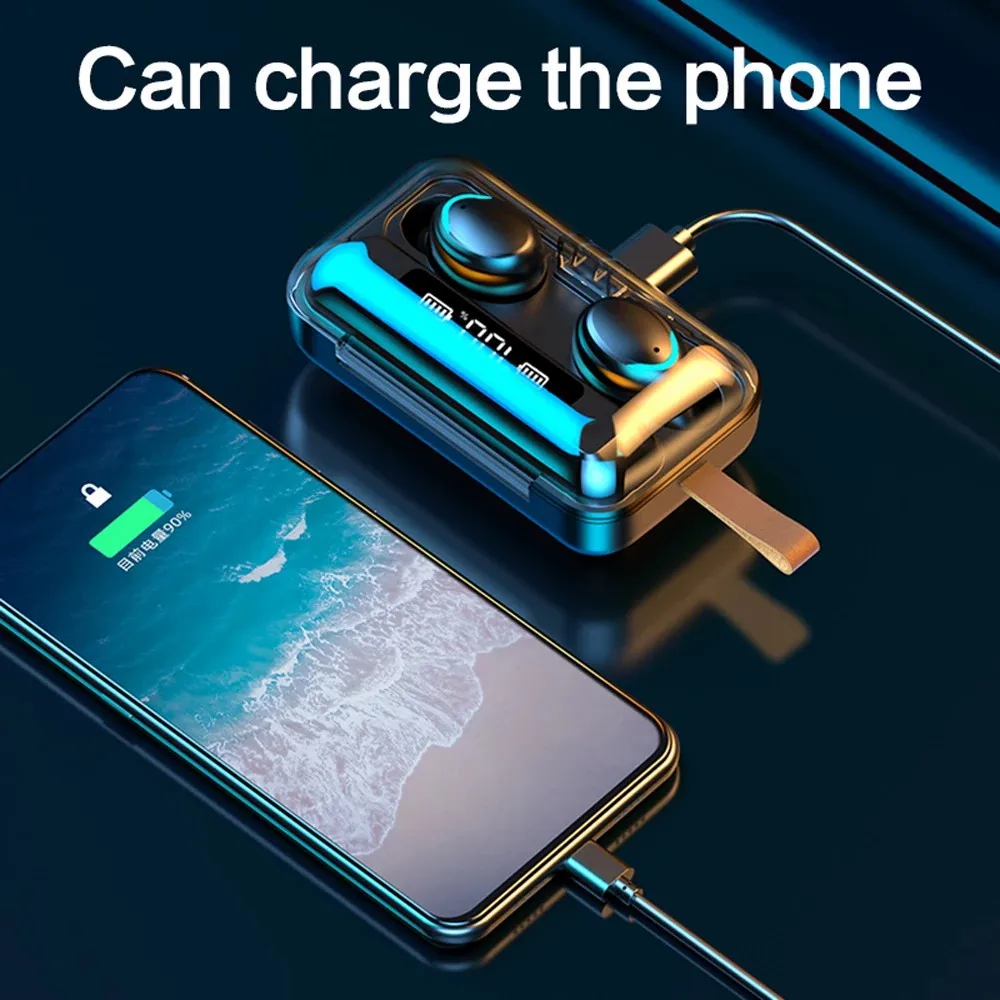 Bluetooth-наушники TWS 2022 мА ч, беспроводные, водонепроницаемые, с зарядным устройством, 9D