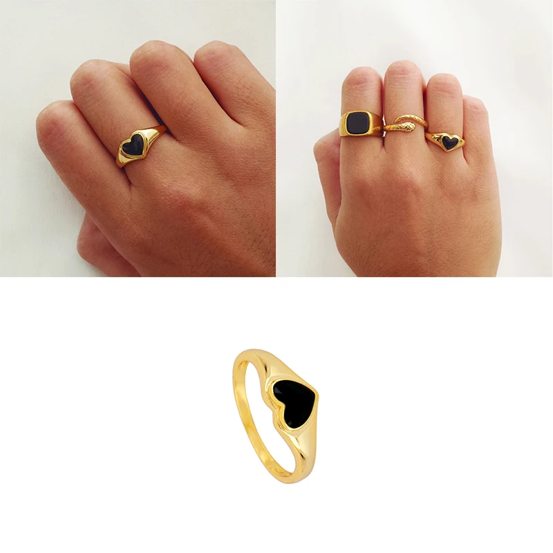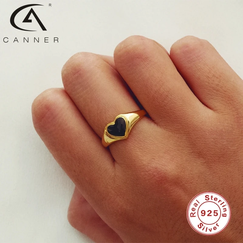 Автоклав Ins черные кристаллы в форме сердца золотой кольца для женщин Свадебные кольца 925 стерлингового серебра ювелирные изделия кольцо Anillos обручальные кольца