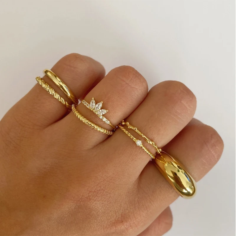 Women JewelryMinimalist Thin Circle Gem Rings Jewelry Carving S925