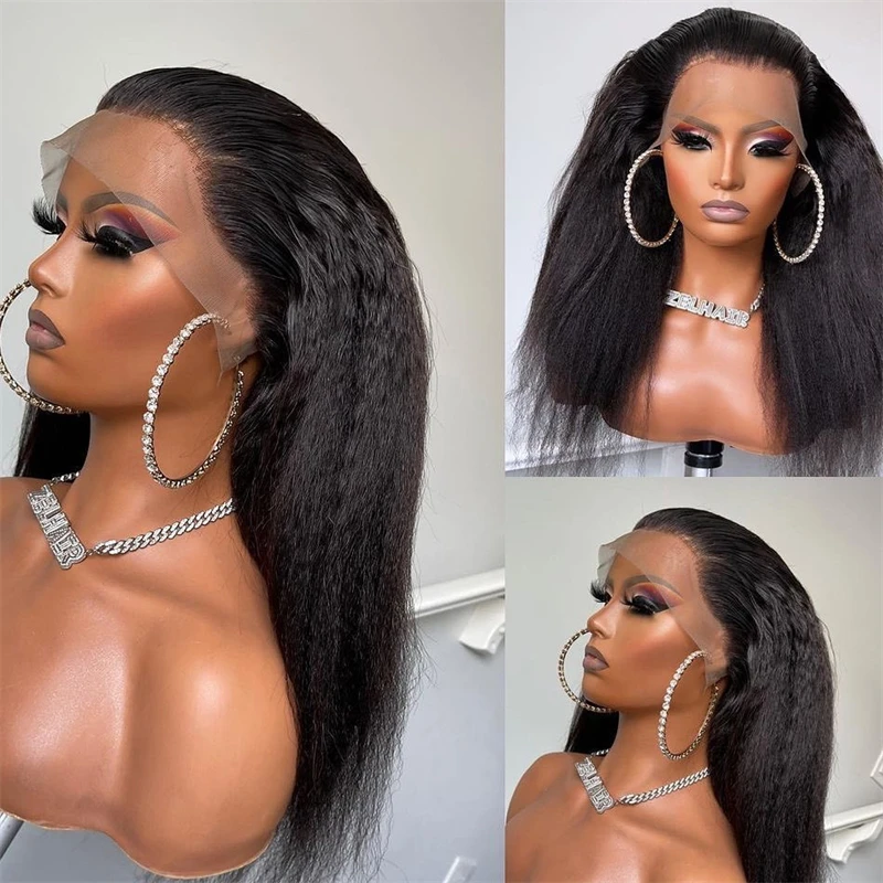 180 плотность длинные курчавые прямые кружевные передние парики Yaki прямые кружевные передние парики для черных женщин парик из термостойкого волокна