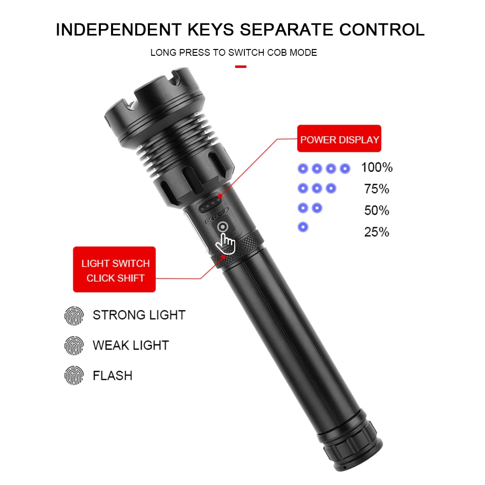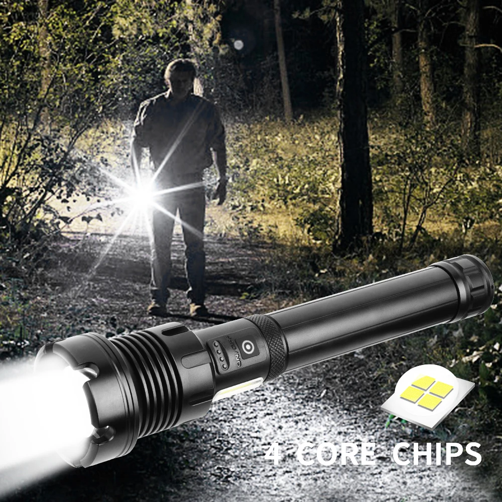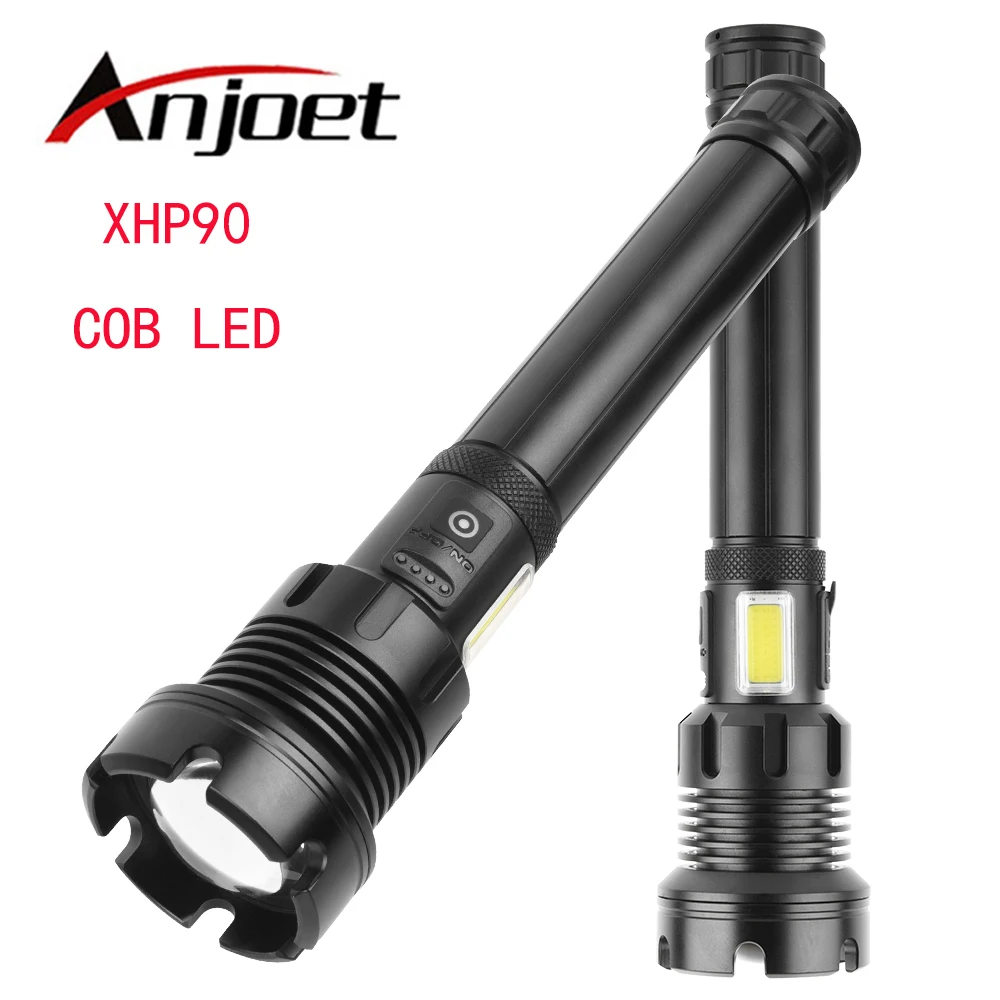 Anjoet супер яркие 4-х ядерный P90 светодиодный вспышка светильник сенсорный выключатель с COB бортовой светильник и индикатор заряда батареи 7 режимов для дома или на открытом воздухе