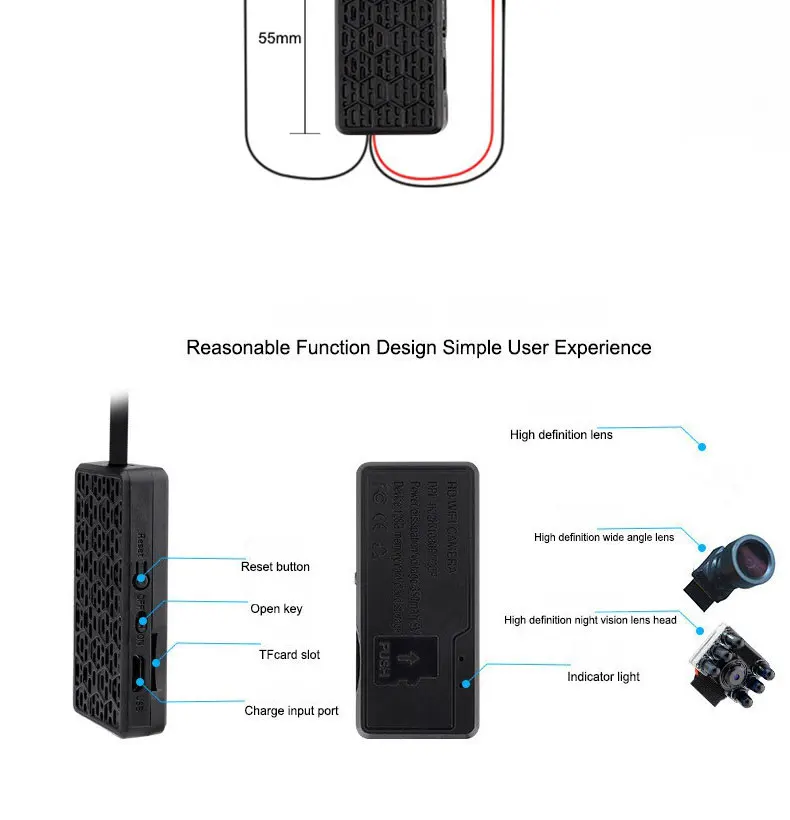 Параметры:Разрешение онлайн-видео: 4k/2K/1080P/720PРазрешение записи sd-карты: 1080P/720PФормат видео: ASFЧастота видеозаписи: 25/30 кадров в секундуУгол обзора объектива: 90/120 градусовМикрофон: ВстроенныйПамять: поддержка 64 ГБ Micro Card in MaxМин. Освещение: 2 люксаОперационная система смартфона: iPhone iPad или Android Посылка: 1 мини-камера WiFi1 х батарейный блок (без аккумулятора 18650)1 х кабель1 х Руководство