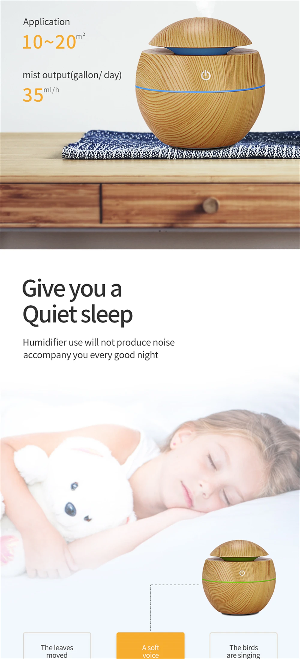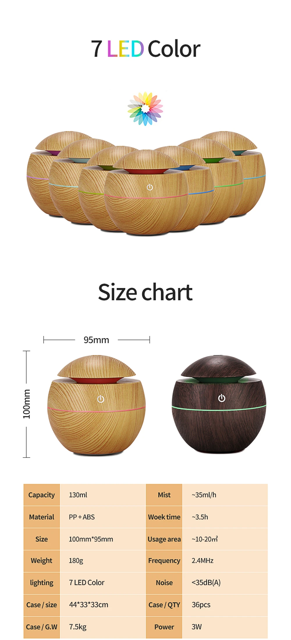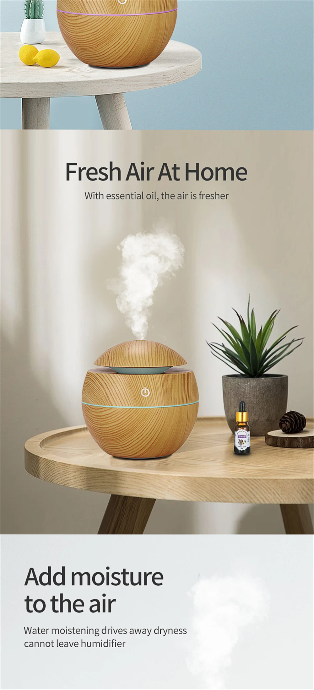 Деревянный ультразвуковой увлажнитель воздуха, 130 мл, USB