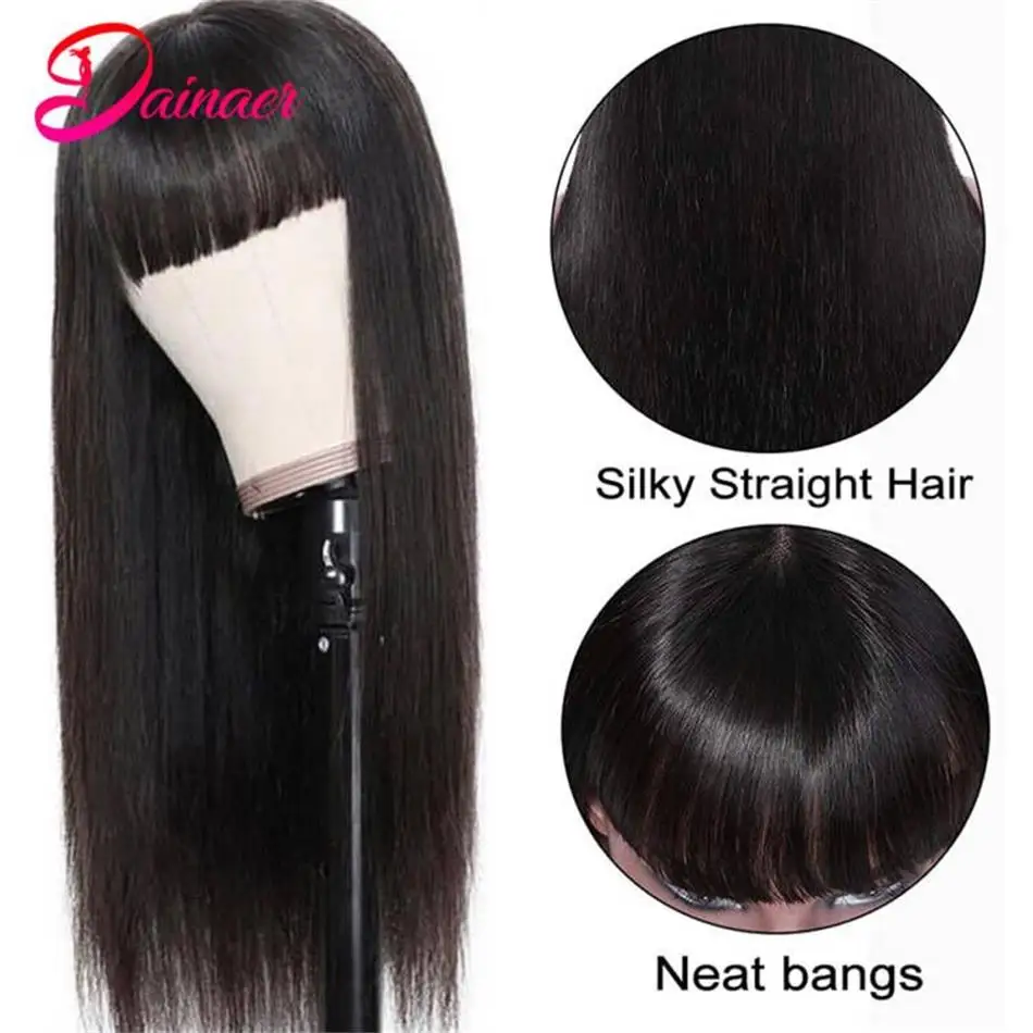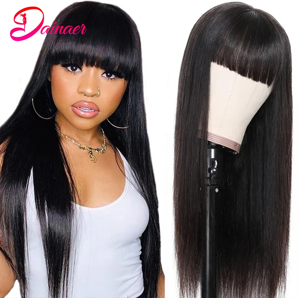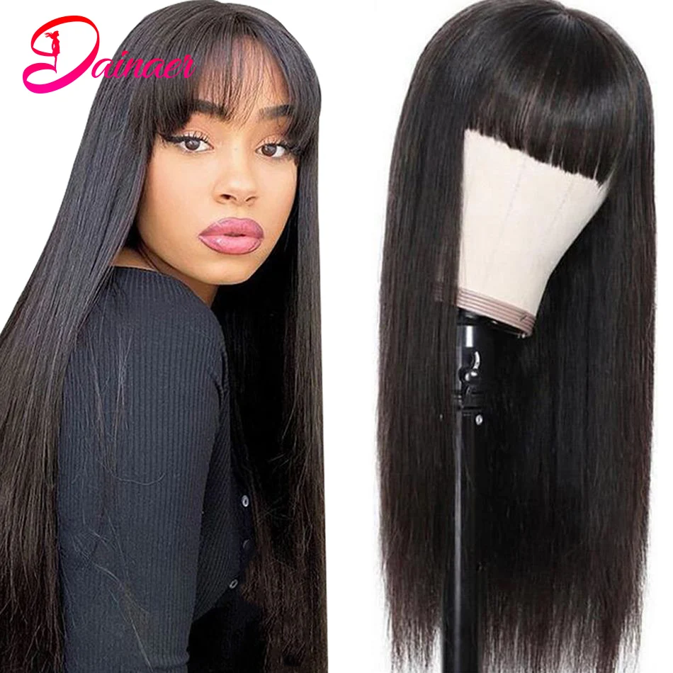 Бразильский прямой парик из человеческих волос с челкой, полностью машинный парик без шнурка, человеческие волосы Remy, парики для женщин, дешевый парик, натуральный парик
