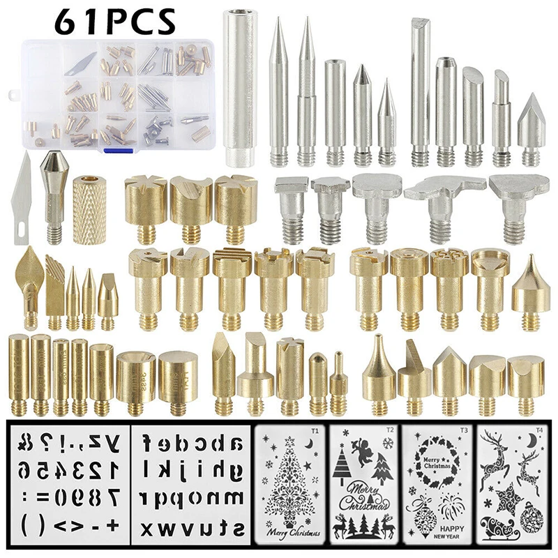 61 шт.компл. ручка для выжигания по дереву, медная электрическая паяльная ручка для выжигания, наконечники для головки сделай сам, инструменты для тиснения по дереву и коже
