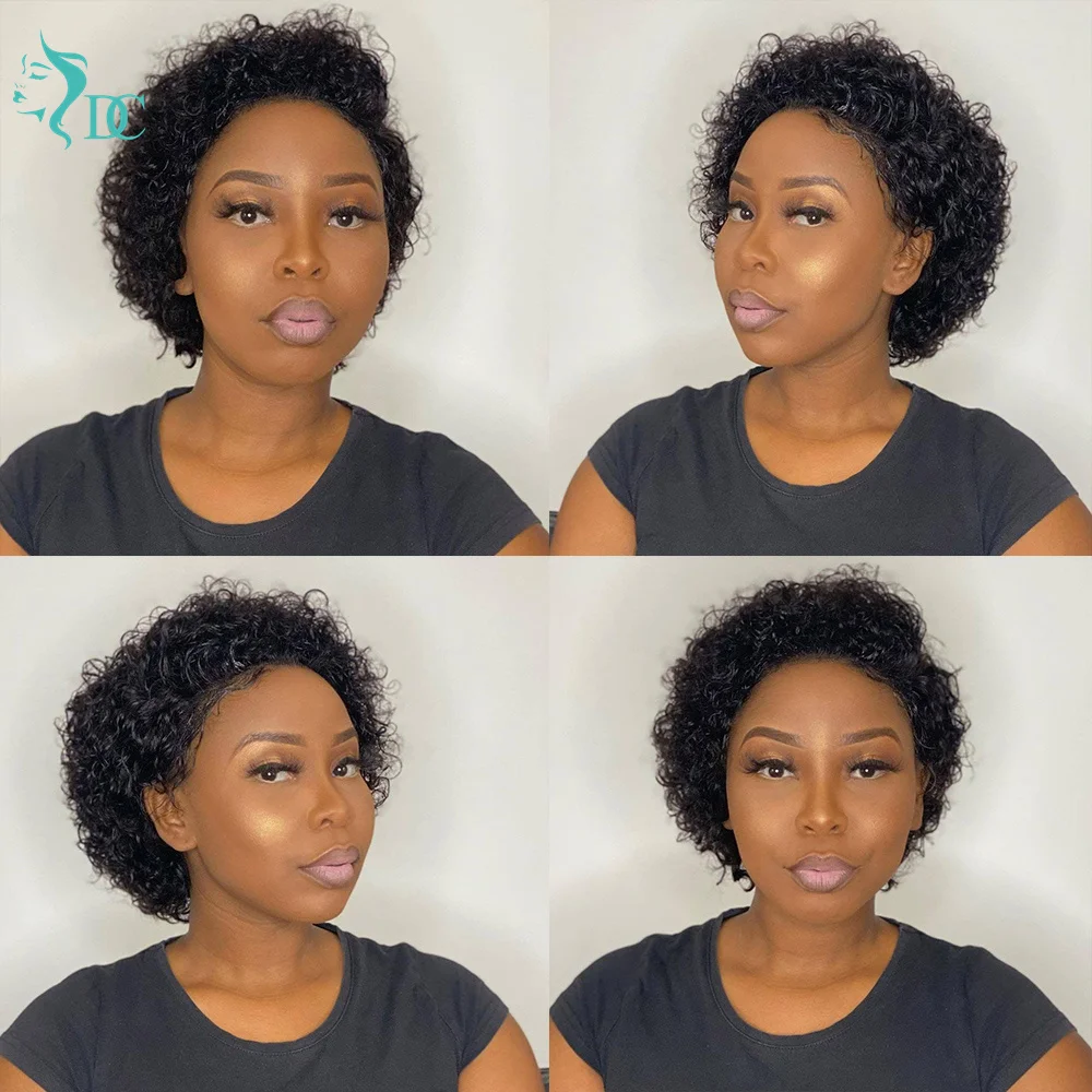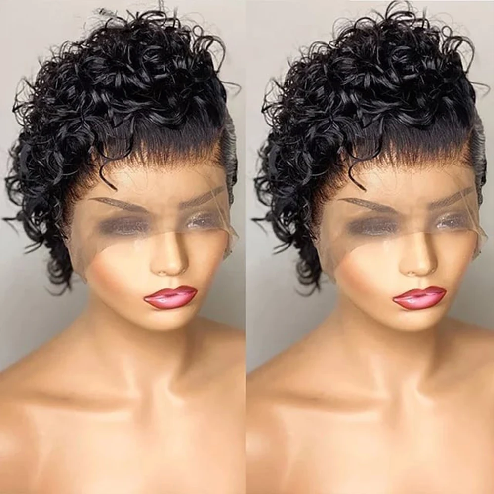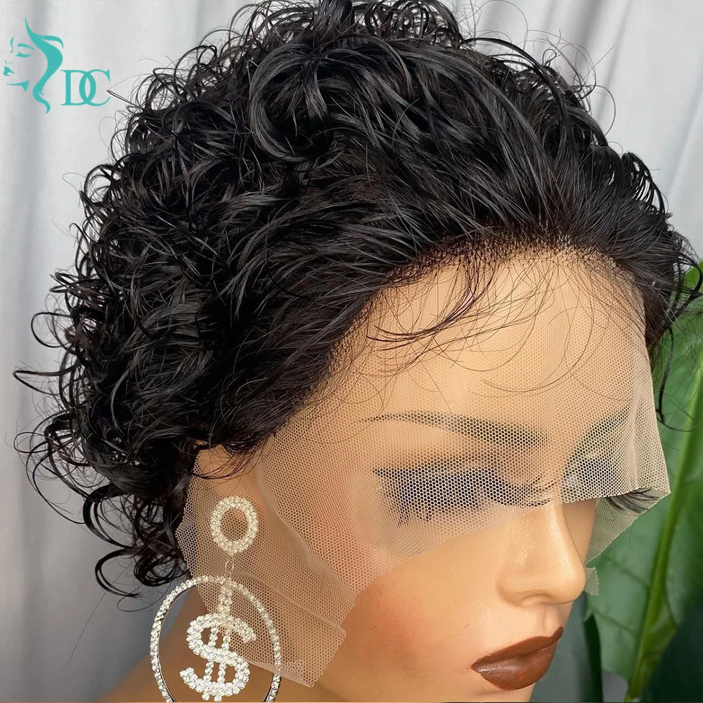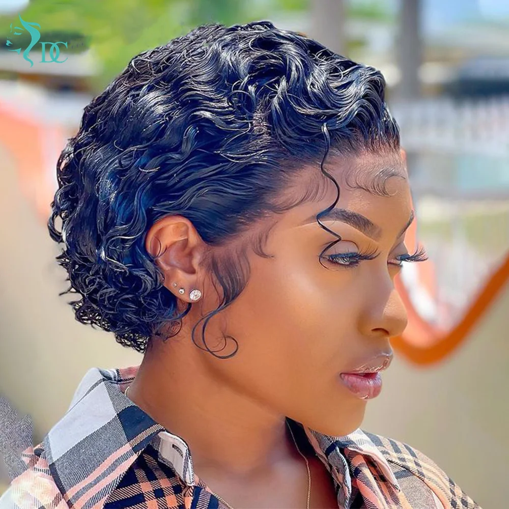 Парик стрижки Пикси, короткий кудрявый парик из натуральных волос 13x1, прозрачный парик на фронтальной сетке, глубоководный кудрявый короткий парик Боб, дешевый парик из натуральных волос