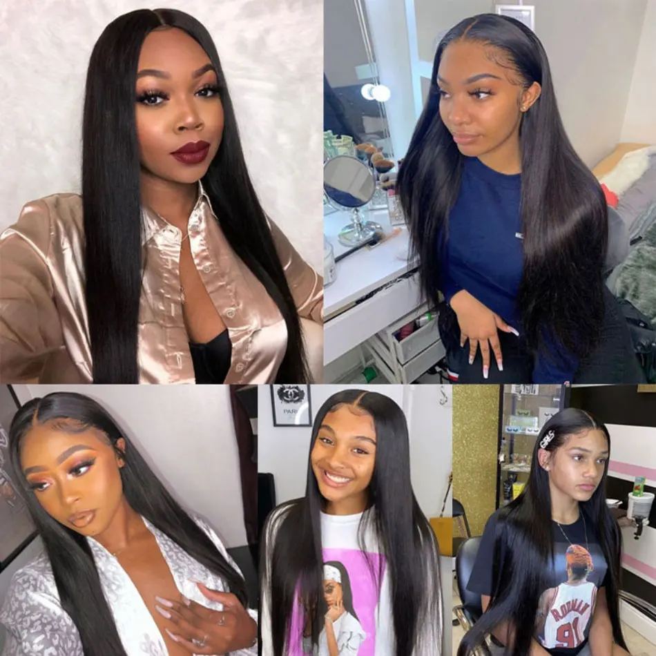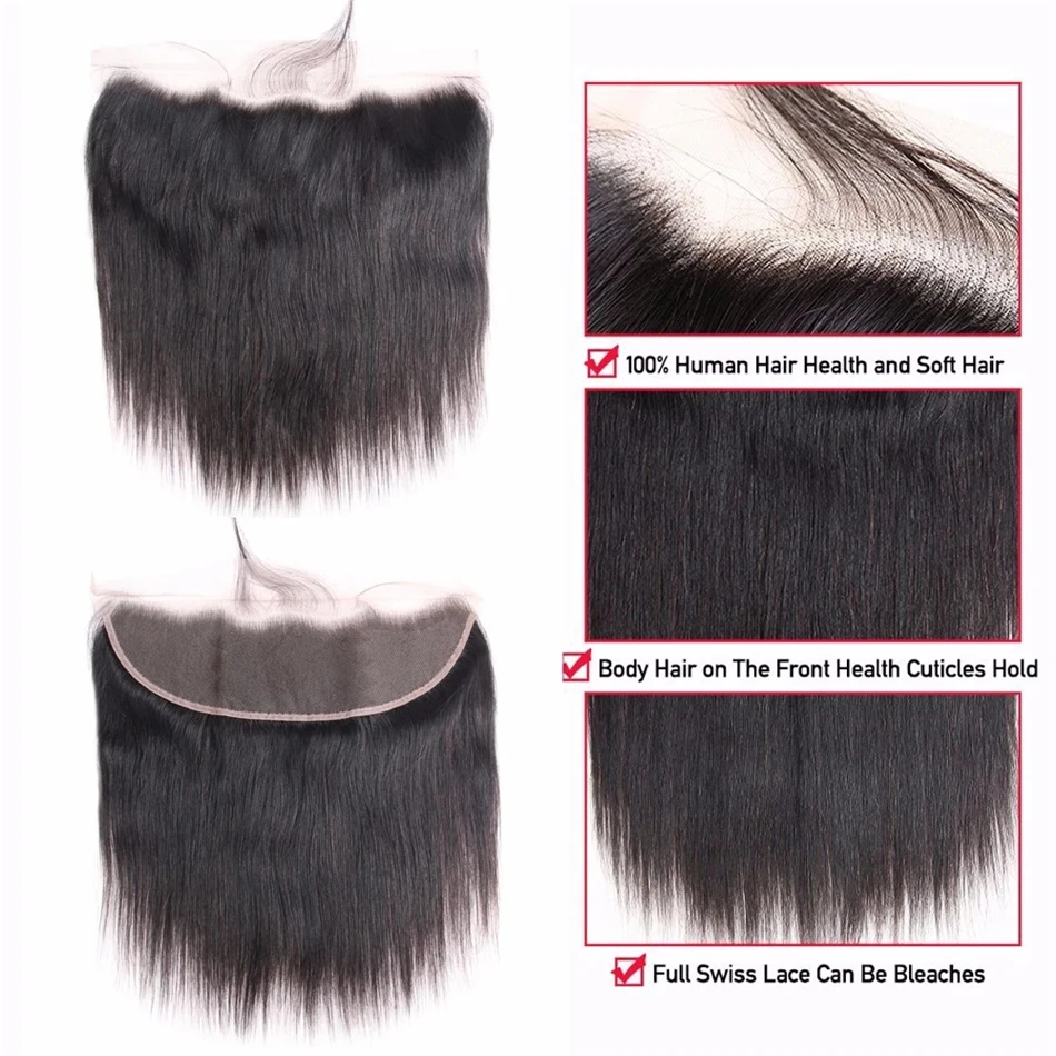 Прямые бразильские натуральные человеческие волосы Remy 30, 36, 40 дюймов, 3, 4 пряди с 13x4 кружевными фронтальными волосами для наращивания, оптовая продажа