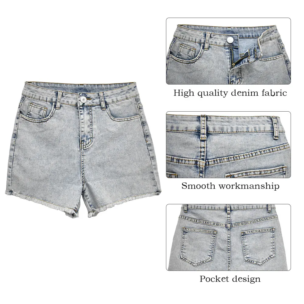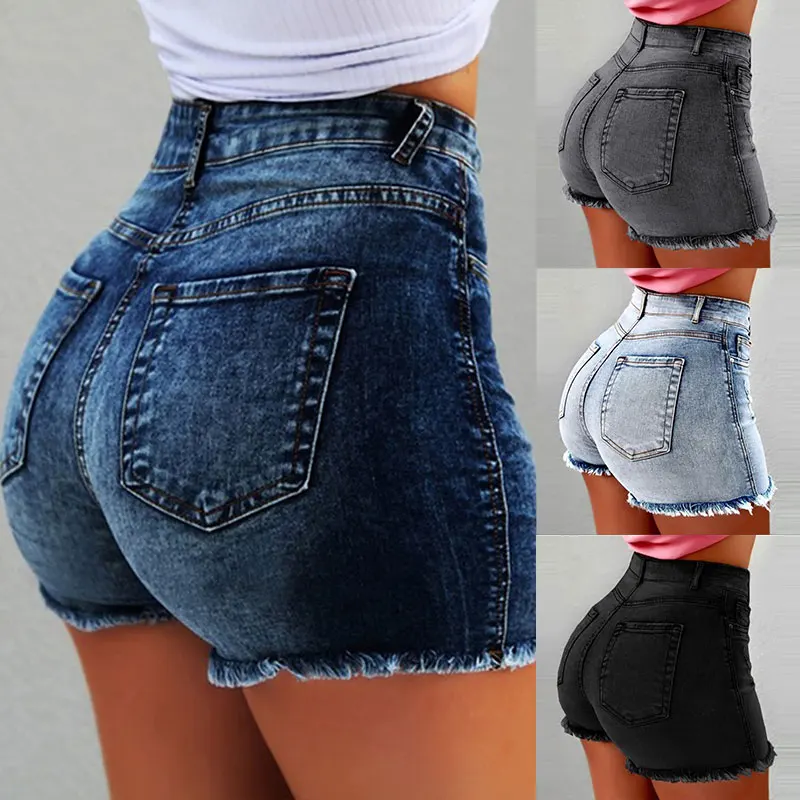 Женские джинсовые шорты, новинка 2021, летняя женская одежда, джинсовые шорты с высокой талией, потертые рваные повседневные шорты с бахромой и карманами
