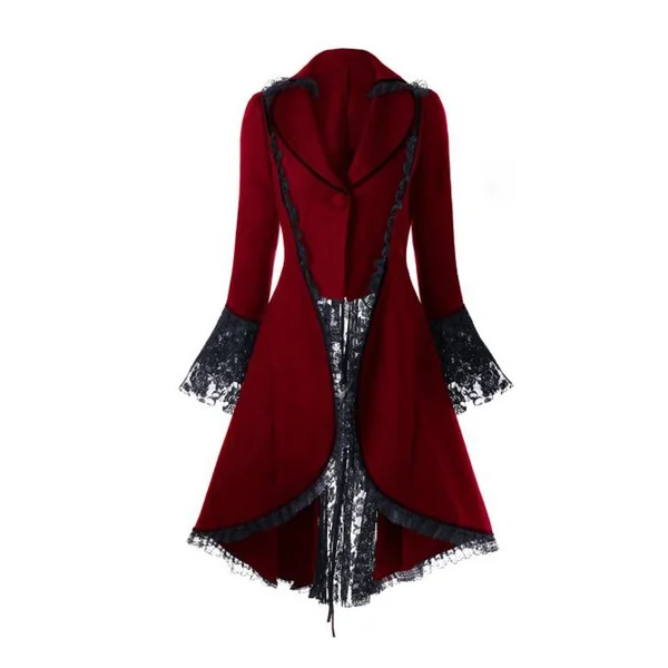 Женский с кружевной отделкой, на шнуровке, Высокий Низкий пальто черный стимпанк в викторианском стиле Стиль в готическом стиле, куртка средневековый благородный придворное платье размера плюс S-5XL