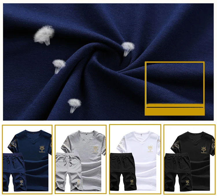 Мужские украшенные вышивкой комплекты летние мужские спортивные костюмы футболка с v-образным вырезом + шорты, 2 предмета в комплекте, 2021 мужские шорты, спортивный костюм, комплект размера плюс спортивный костюм мужской 5XL