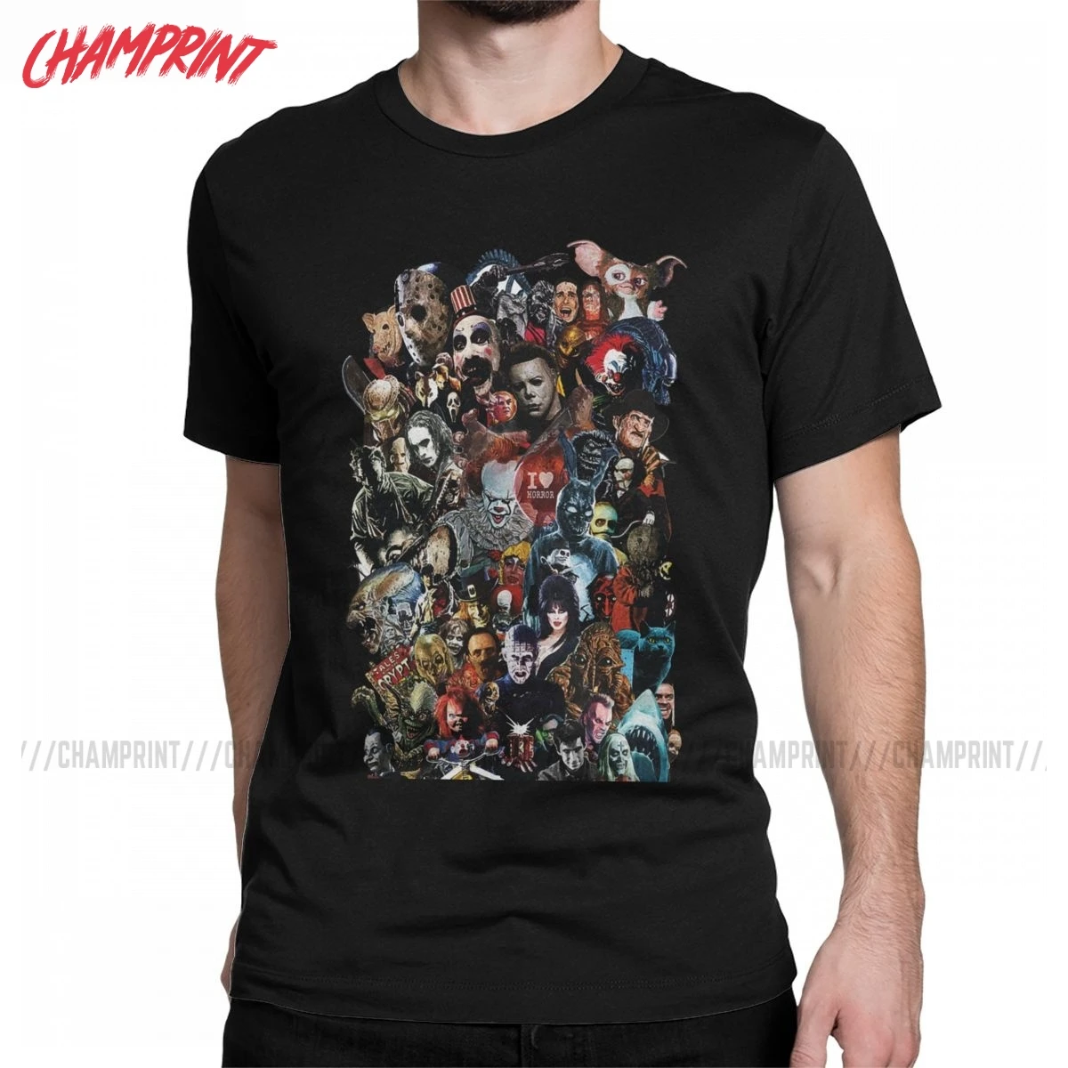 Забавные из фильма ужасов Герои Мужская футболка с круглым вырезом, хлопковая футболка, с короткими рукавами, летние футболки, одежда