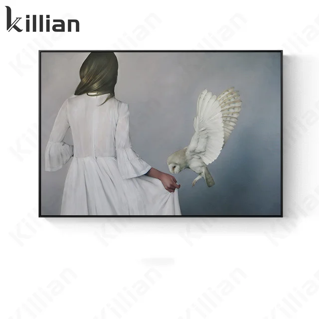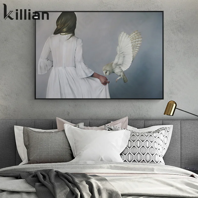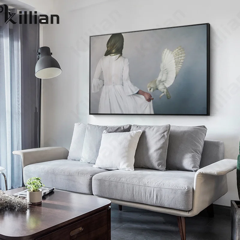 Животные для влюбленных домашний декор плакат белая птица и одинокая красивая женщина вид сзади абстрактный холст Художественная печать для стены гостиной