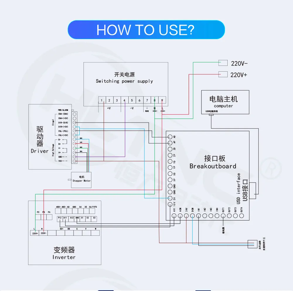 Комплект шагового двигателя 3 оси 2,2 нм включает 3 двигателя + 3 драйвера TB6600 DM542 + 1 блок питания + 1 контроллер mach3