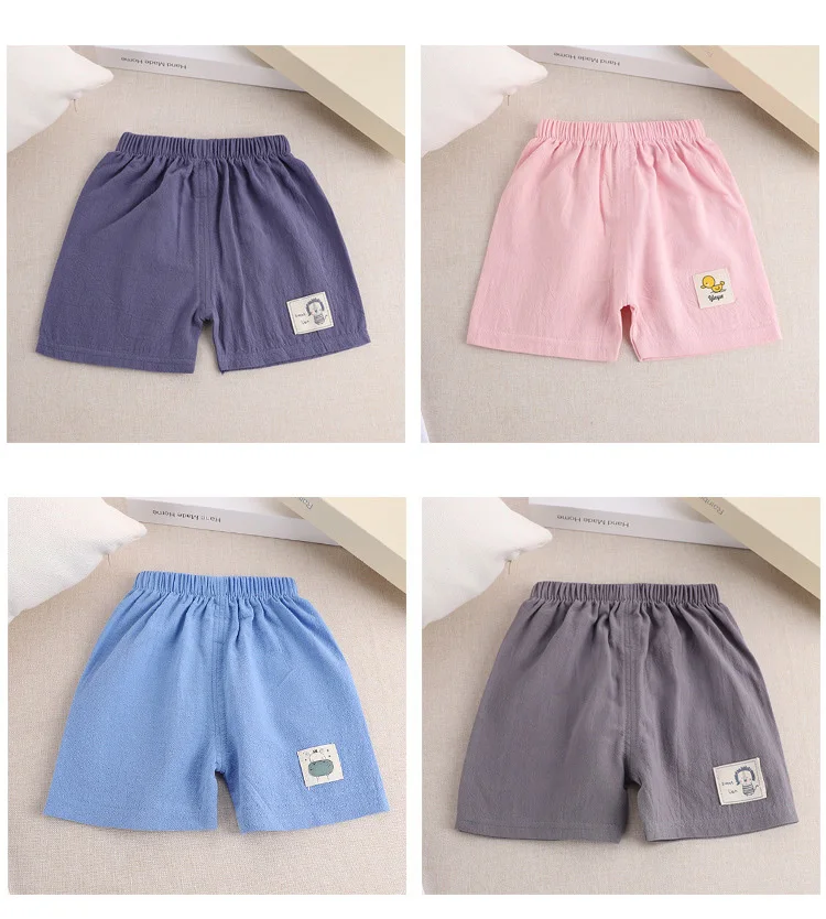 Детские летние шорты, одежда для маленьких мальчиков, корейские хлопковые льняные брюки для мальчиков и девочек, брюки, Мультяшные детские повседневные брюки, детская одежда