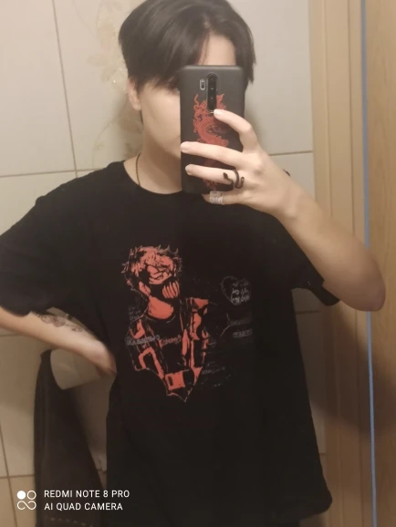 Мужская футболка с принтом аниме, из 100% хлопка, с коротким рукаво...