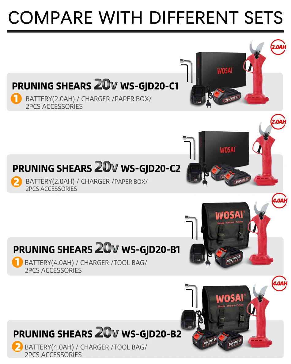 Ножницы электрические WOSAI MT-Series, 20 в, беспроводные, перезаряжаемые, для фруктовых деревьев