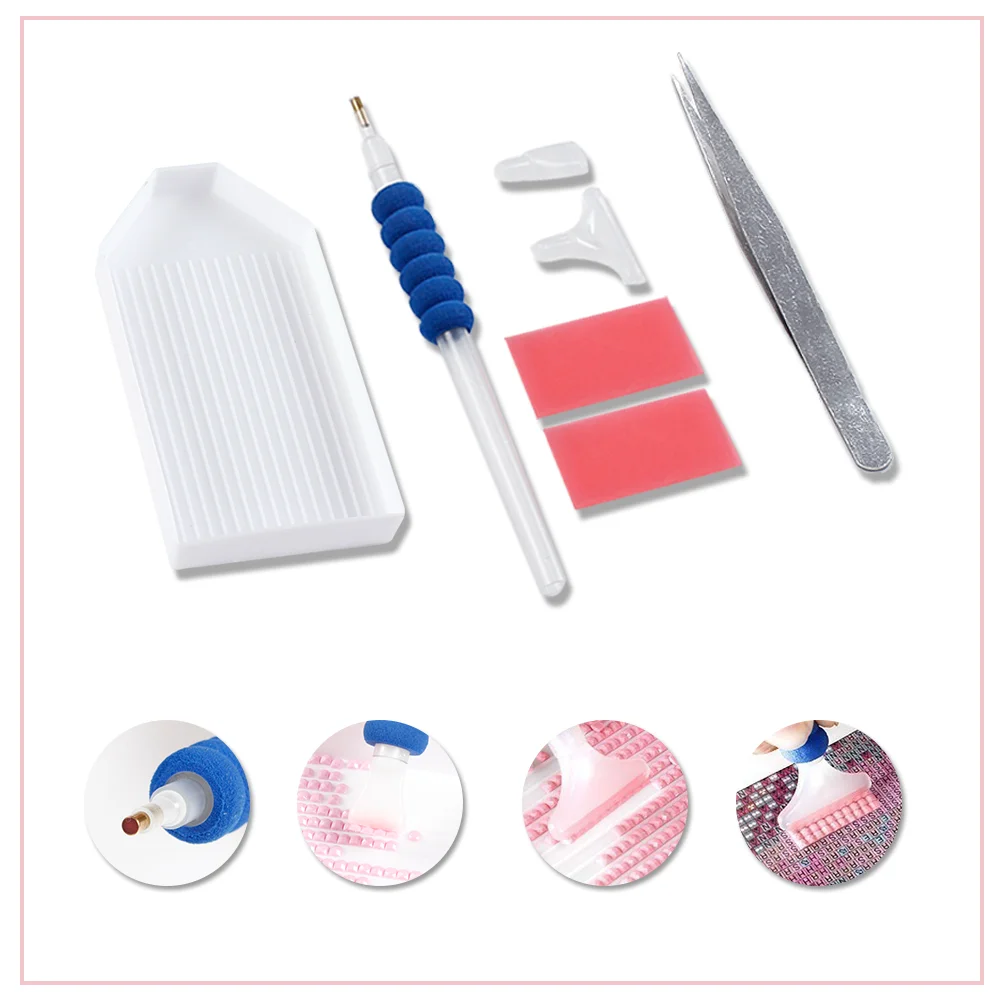 Инструменты включают в себя: пинцет, лоток, точечная Алмазная дрель, клей
