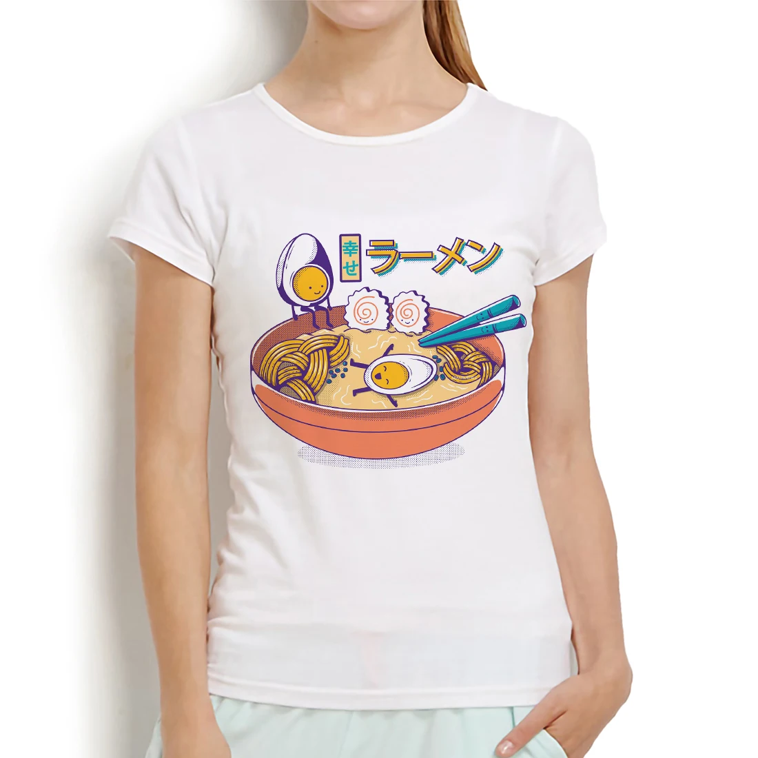 Милая забавная футболка счастливого рамен в японском стиле, женская новая белая повседневная женская футболка с коротким рукавом, уличная одежда, кавайная футболка в стиле Харадзюку