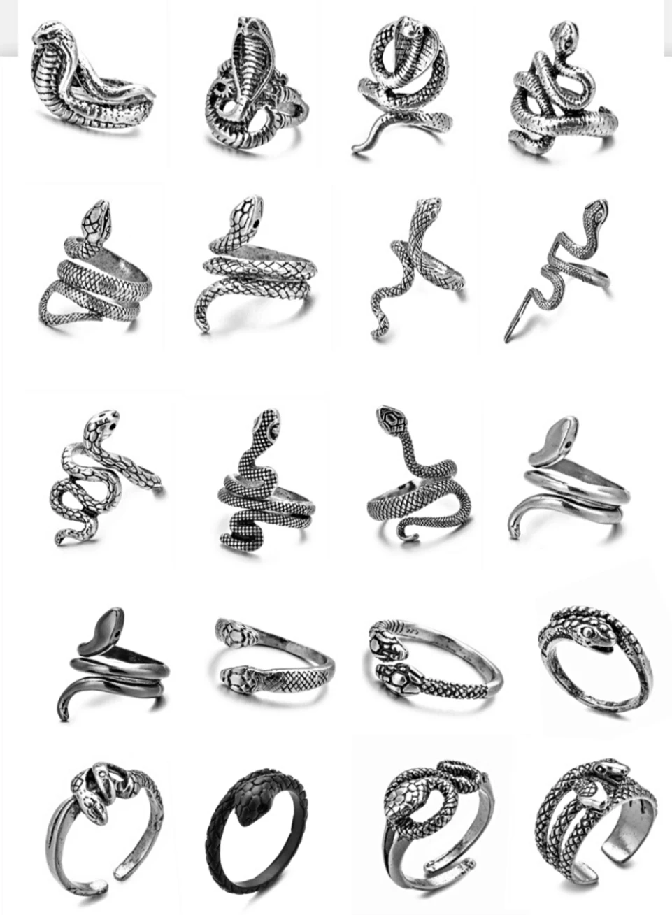 Мужскоеженское кольцо в стиле ретро, регулируемое, в виде змеи