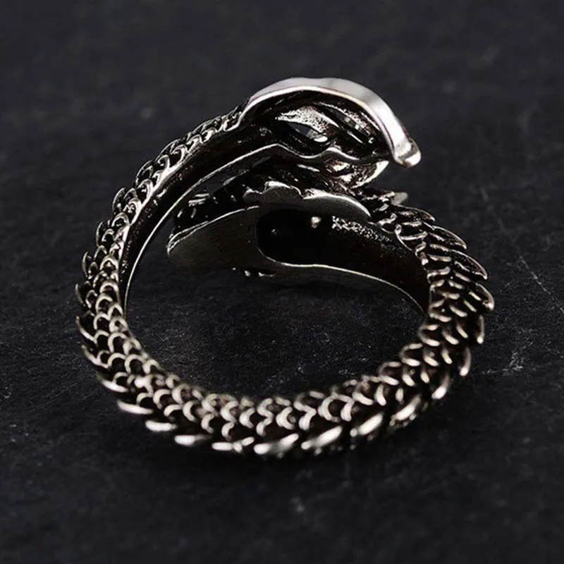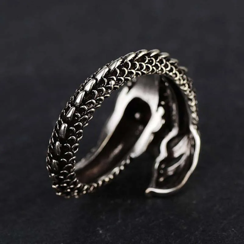 Мужское Винтажное кольцо с драконом, регулируемое кольцо черного и ...