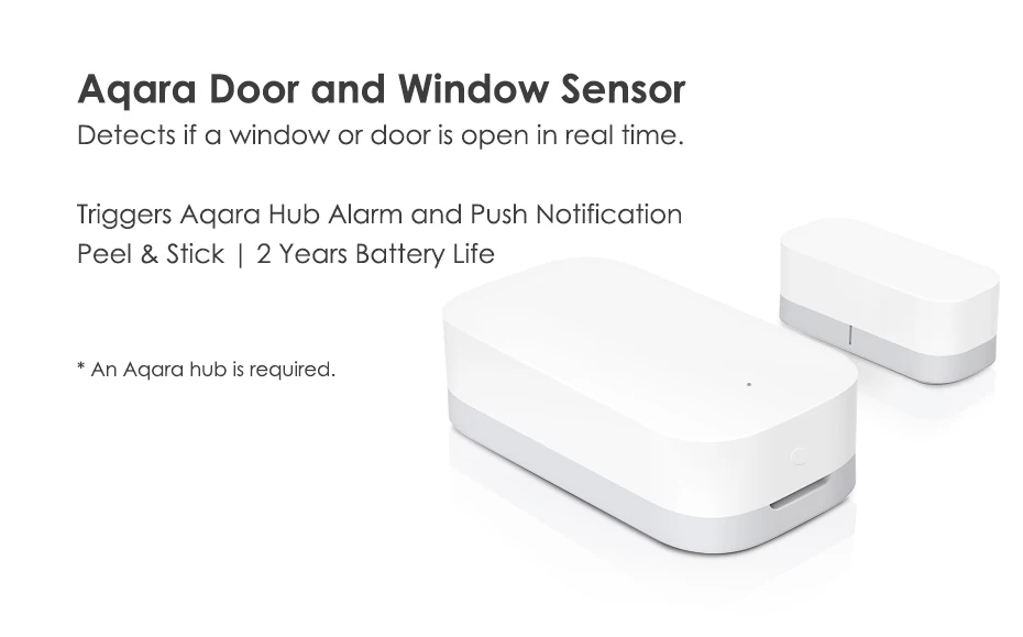 Для дополнительного спокойствия Установите датчик двери и окна Aqara, чтобы вам никогда не пришлось беспокоиться о состоянии ваших дверей и окон.