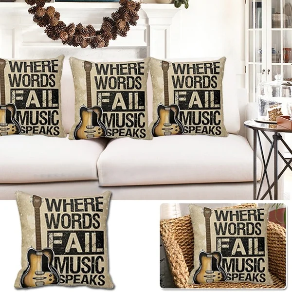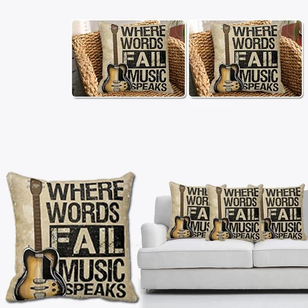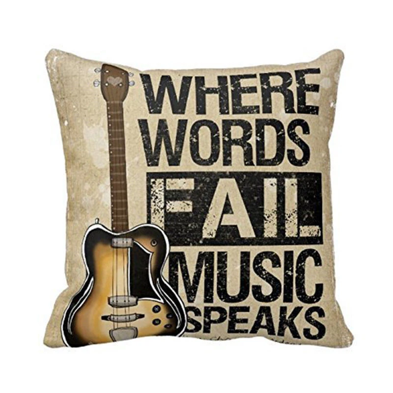 Винтажный индивидуальный льняной Чехол Подушка "Гитара", наволочка с музыкальными словами, чехол для дивана-кровати, украшение для автомобиля, чехол для подушки