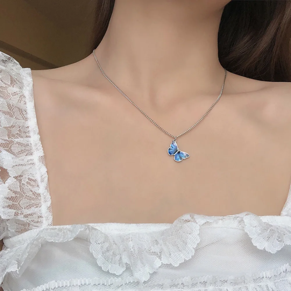 Чокер с подвеской-бабочкой женский, летнее ожерелье из металла под серебро, готическое Ювелирное Украшение до ключиц, 2021