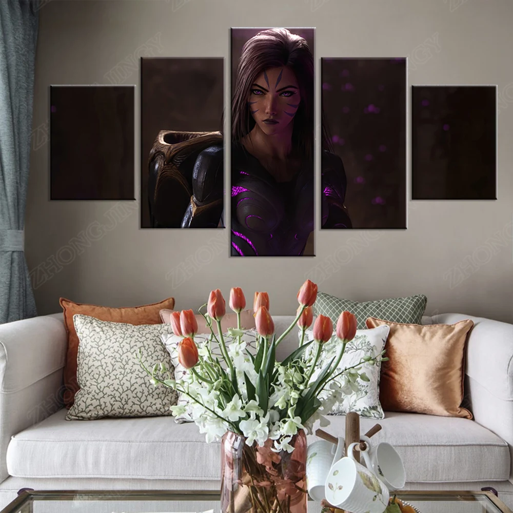 5 панелей мультфильм CG Kai'Sa (Kaisa) League of Legends HD Game плакаты, постеры холст искусство для комнаты декор стен