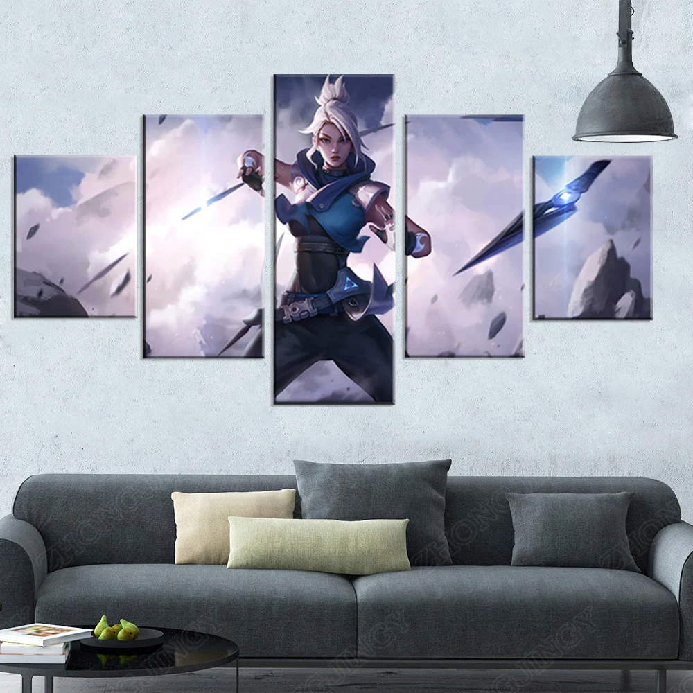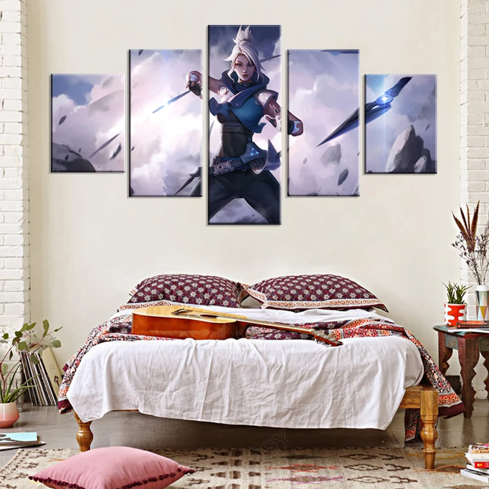 Картины из 5 панелей с изображениями персонажей игр Джетт-валорант, настенная живопись для гостиной, настенное украшение без рамы