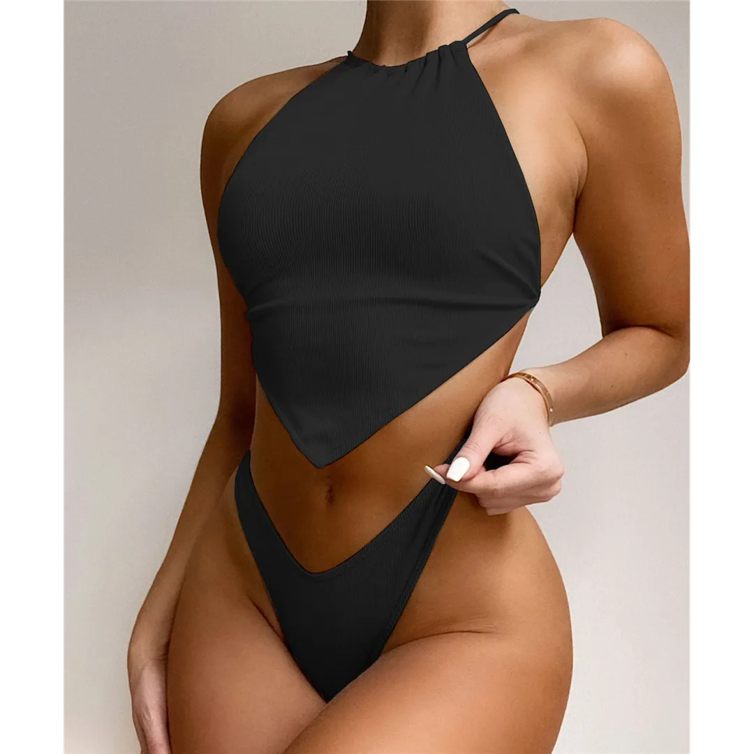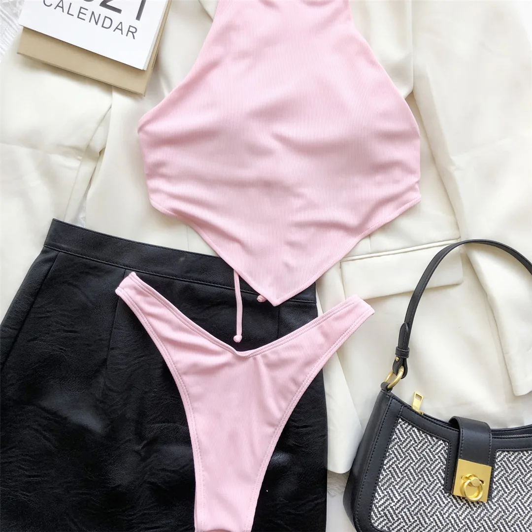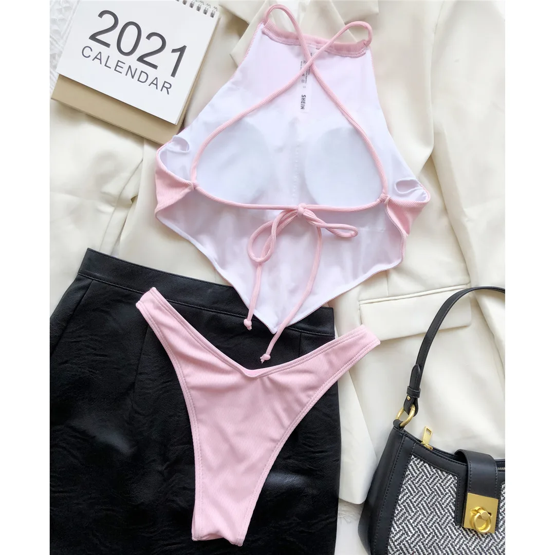 Сексуальное бикини в рубчик с лямкой на шее, женская одежда для пла...