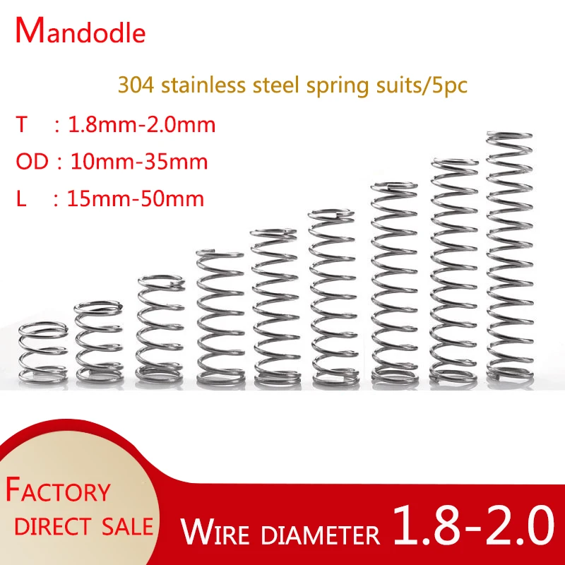 5 шт., пружины из нержавеющей стали 304, 1,82,0 мм
