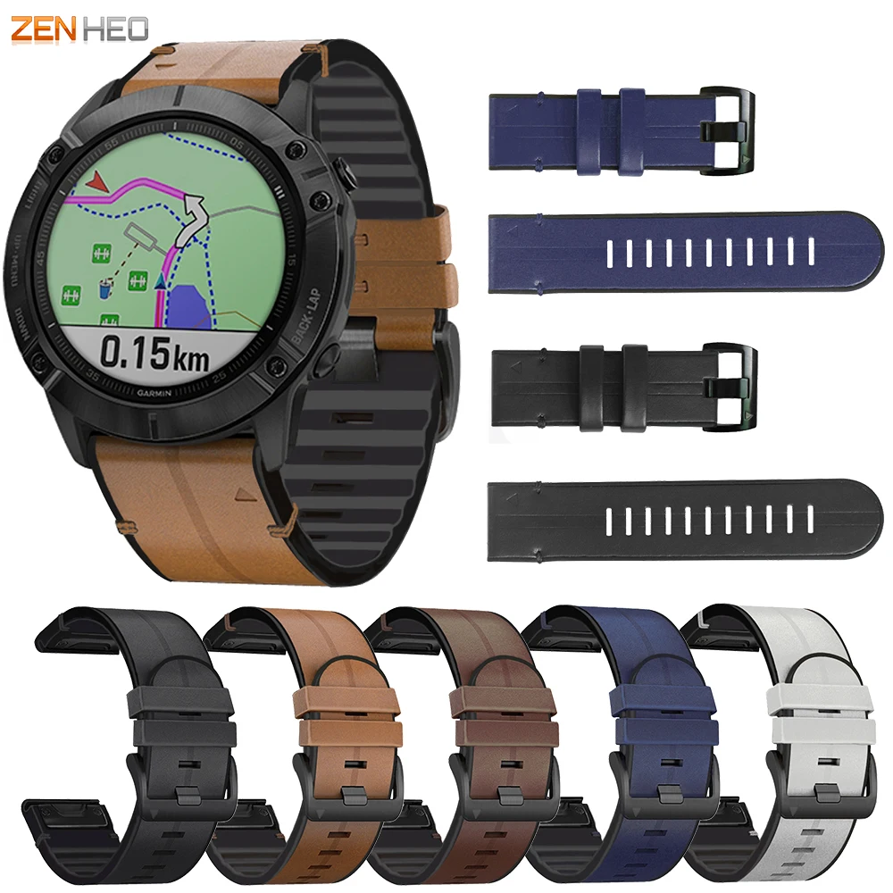 Ремешок из силикагеля и кожи для Garmin Fenix 6X 6 Pro 5X 5 Plus 3H...