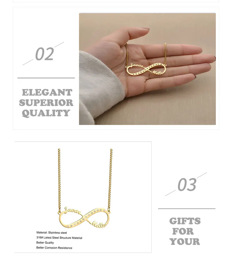 Индивидуальное ожерелье с именем бесконечности на заказ, цепочка из...