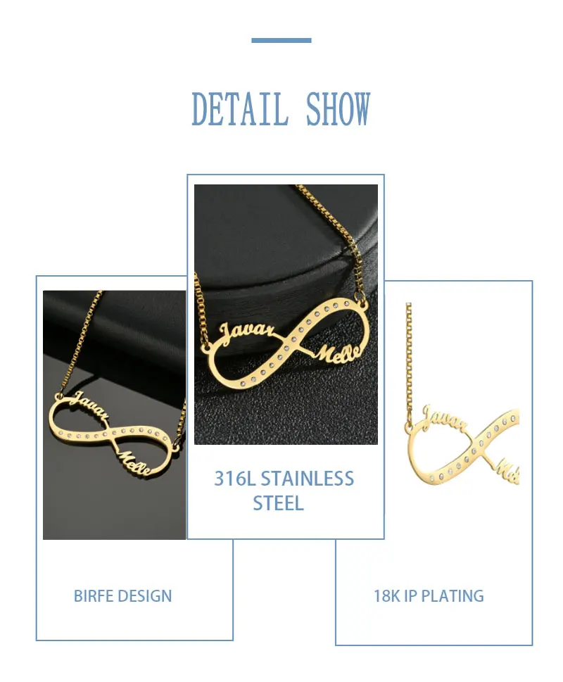 Подгонянная нержавеющая сталь бесконечное имя Слои ожерелья для жен...