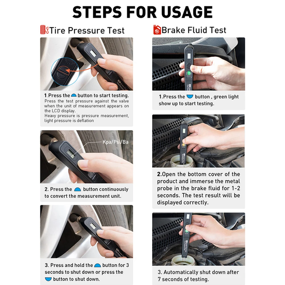 2 в 1 Универсальный Автомобильный тормозной жидкости тестер шин Давление датчика цифровой контроль качества ручка автомобиля инструмента тестирования для автомобильных кабельных систем