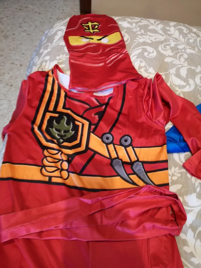 В целом костюм неплохой, есть конечно отдельные моменты - это материал и качество исполнения (нитки и полиэстер). Пришло довольно быстро. Костюм на 116 великоват, хватит надолго. А вот маска неудобная совершенно, прорези не обработаны.
