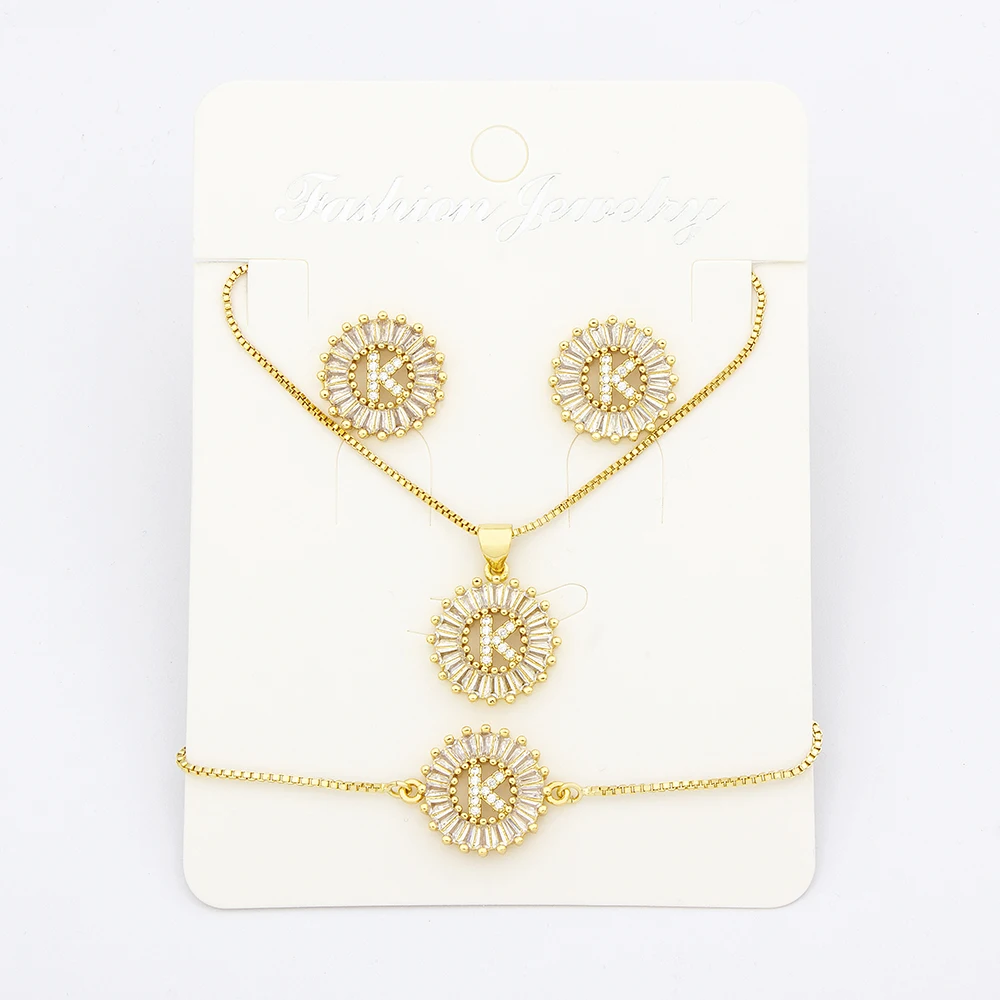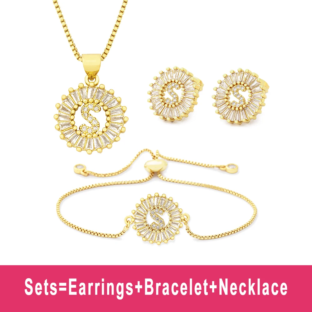 Лидер продаж 26 украшения из букв наборы ожерелье + серьги + браслет для женщин с инициалами алфавита медные циркониевые вечерние свадебные подарки
