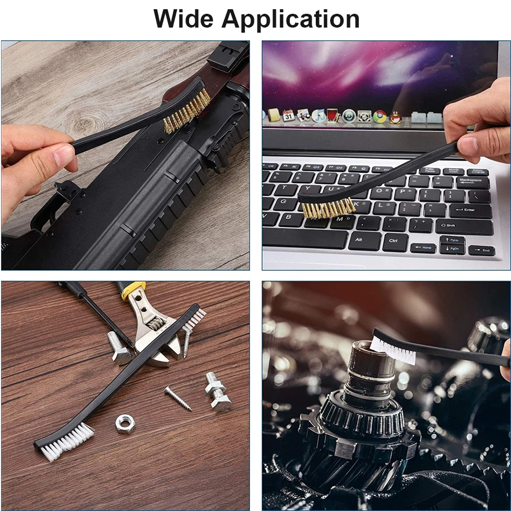 5 кистей и 2 шт. 5 типов двухсторонних кистей-латунь, сталь и нейлон. 2 пистолета для чистки-это материал из нержавеющей стали, один-нейлоновый материал.【Многоматериальные кисти 】универсальные возможности очистки с большим и маленьким концом для очистки всех видов труднодоступных пространств.A. Нейлоновая кисть-идеально подходит для удаления грязи и мусора со внутренних дверных панелей, отделочных частей, панелей приборов на готовых поверхностях.Б. Латунная щетка-Очистите незавершенные металлические детали, такие как винтовые нити, соединительные клеммы и режущие инструменты, не повреждая поверхности или мелкие особенности.C. Щетка из нержавеющей стали-хорошо подходит для очистки и удаления рассыпчатой краски, накипи и ржавчины от металлических деталей и сверхмощной очистки.【Выбор с несколькими точками 】 двухсторонние выборки разных форм отлично подходят для соскабливания грязи и остатков из труднодоступных мест.А. Пики из нержавеющей стали являются острыми и достаточно жесткими, чтобы легко удалить любые пятна на углероде.B. Нейлон подобрать идеально подходит для светильник очистки и предотвращения царапин на пистолет поверхности.[Тонкая нейлоновая трубка] набор кистей для чистки более тонких предметов, каждый конец кисти имеет защитную конструкцию. Не только предотвращает царапины, но и защищает вас от вреда при чистке.【Широкое Применение: 】чистые стальные детали, машинное оборудование, незавершенные металлические детали, пятна краски, специальная коррозия, не повреждая поверхность или мелкие особенности. Его также можно использовать для очистки дверей, окон, раздвижных дверей, напольной плитки и т. д.