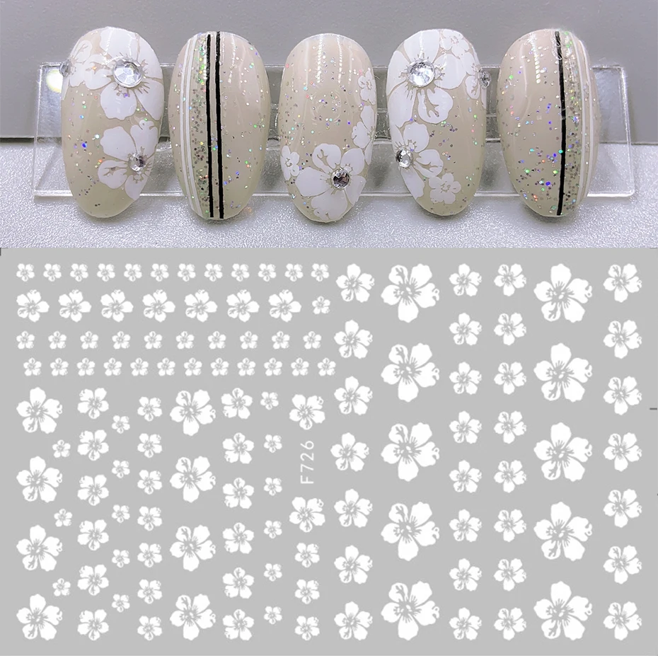 Наклейки для ногтей, 1 шт., наклейки цветы, с изображением белых вишен, цветов, листьев, букв, наклейки для самостоятельного маникюра, украшения для ногтей, JIF724-727