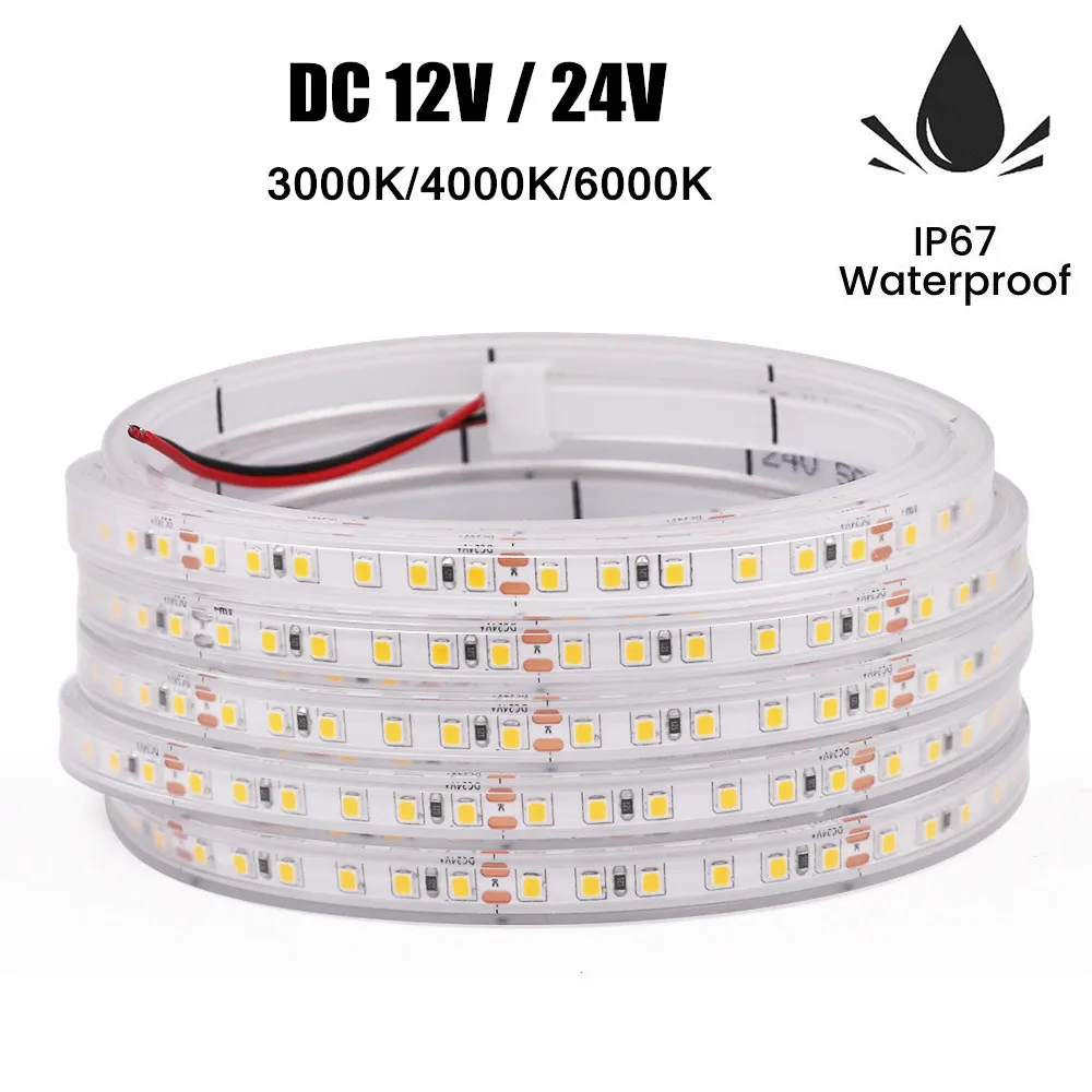 Светодиодная лента IP67, 12 В, 24 В постоянного тока, водонепроницаемая, холодныйестественный белый, 3000K, 4000K, 6000K, 2835, 120 светодиодов, sm, Светодиодная лампа освещения