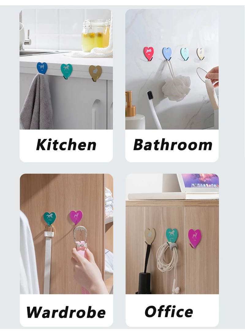 1. Материал из нержавеющей стали, износостойкий и прочный, не легко деформируется 2. Красочные крючки с сердечками для девочек, украшают комнату девочки, создают другой стиль 3. Без дырочек, самоклеящийся крючок, простая установка и удобное использование