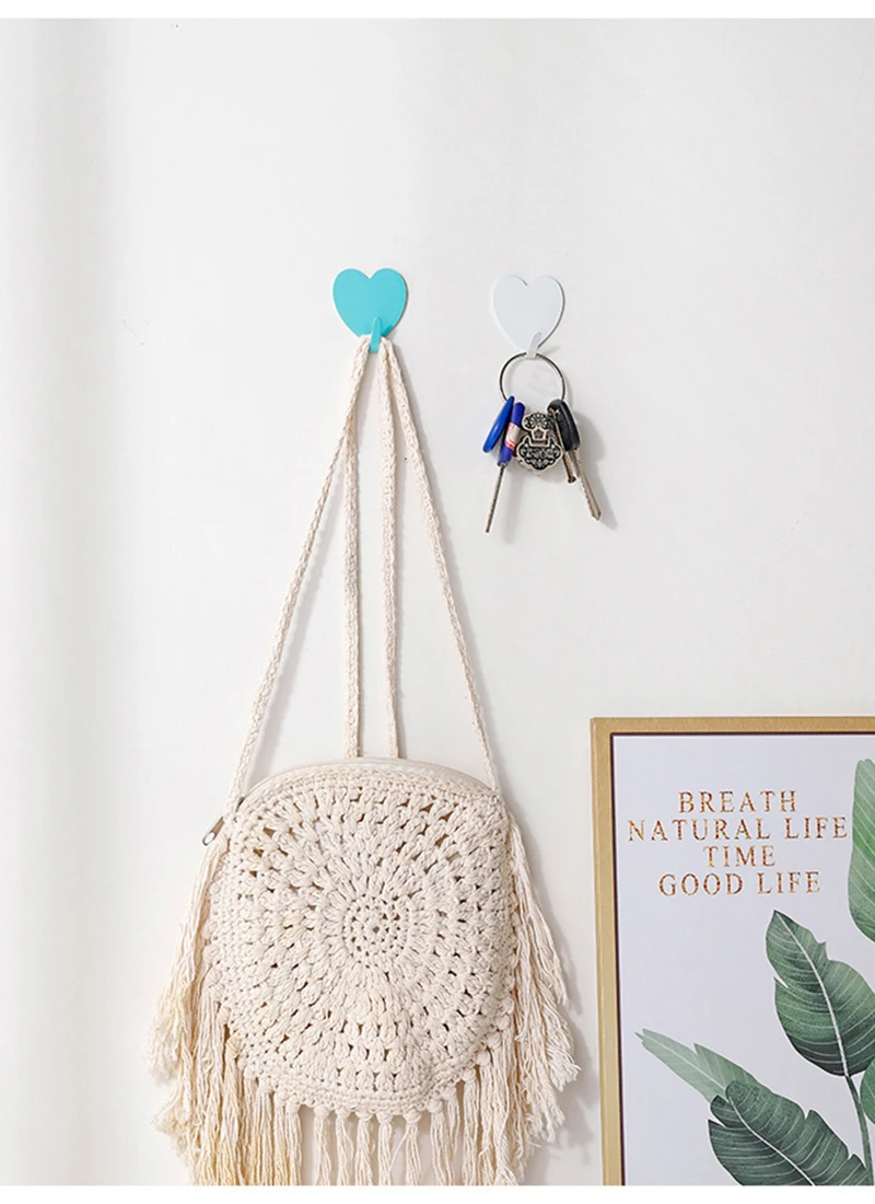 5 шт. настенные крючки в форме сердца, розовые декоративные крючки для девочек, вешалка для ключей