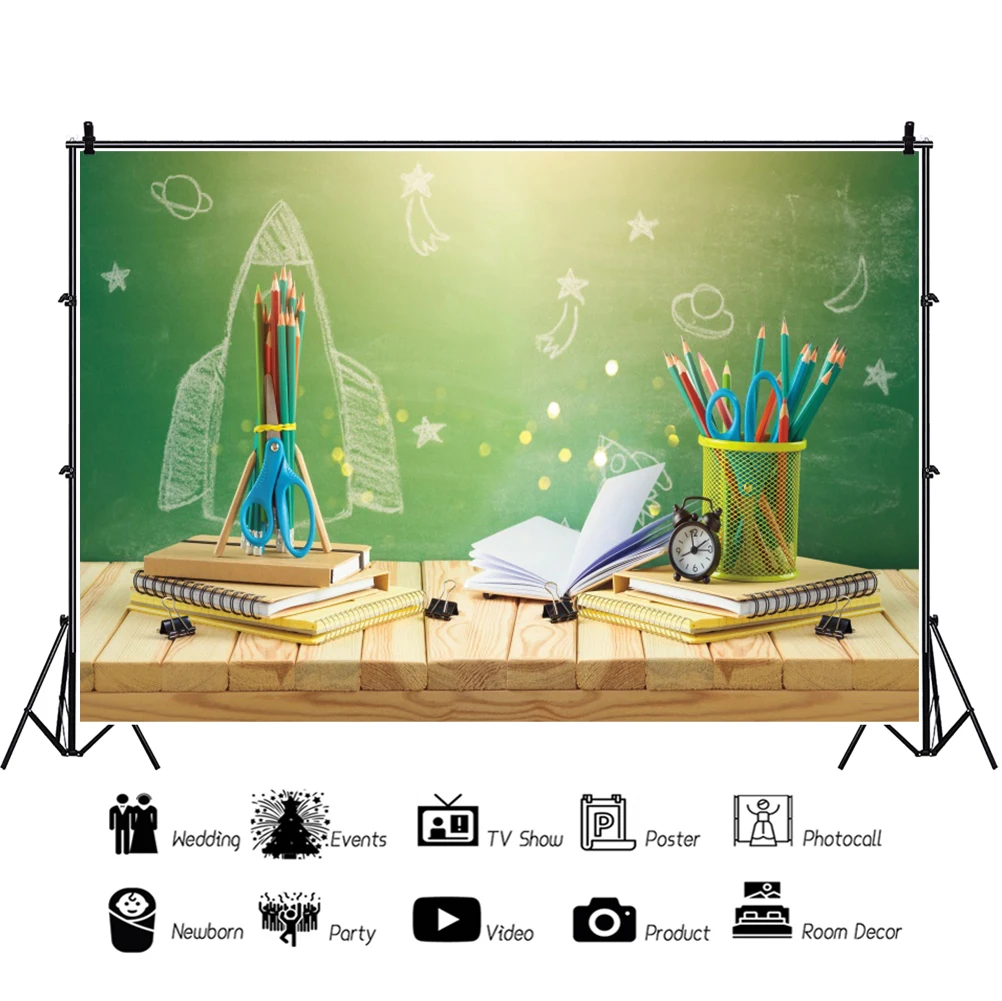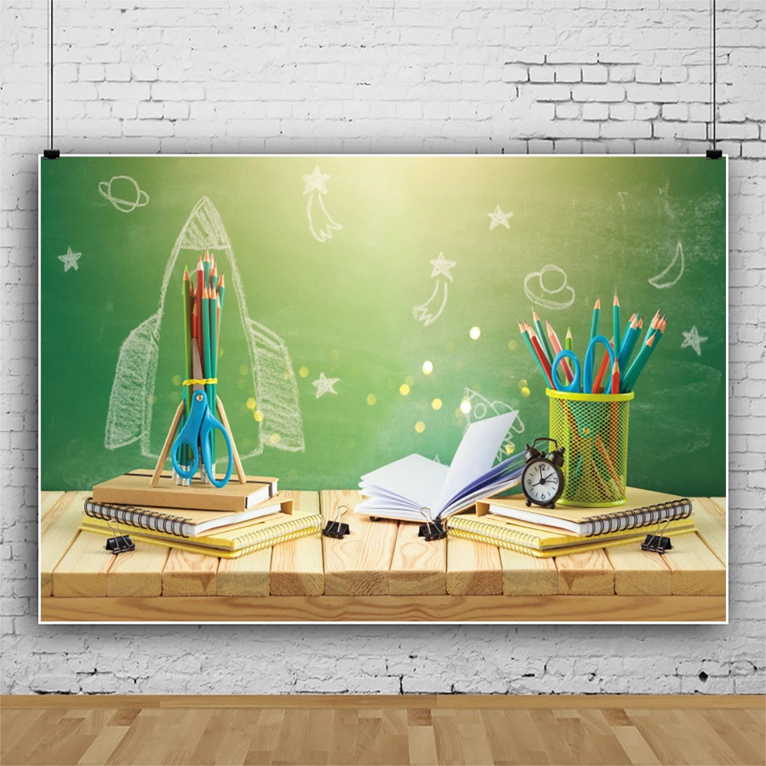 Back To School фоны для фотографирования с изображением светильник боке карандаши доски книг стола Детский фон для портретной Фоны реквизит Фотофон для студийной съемки