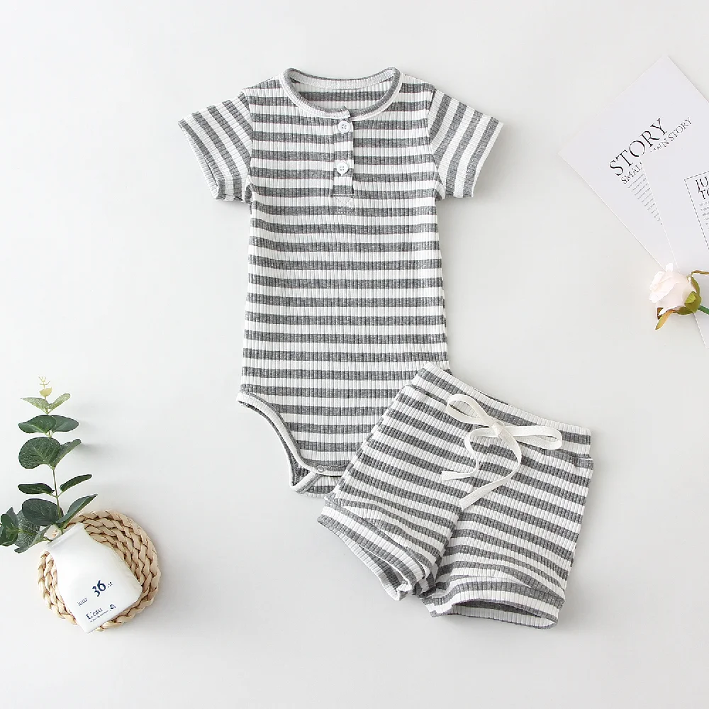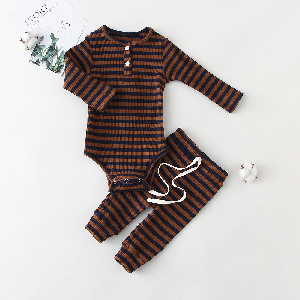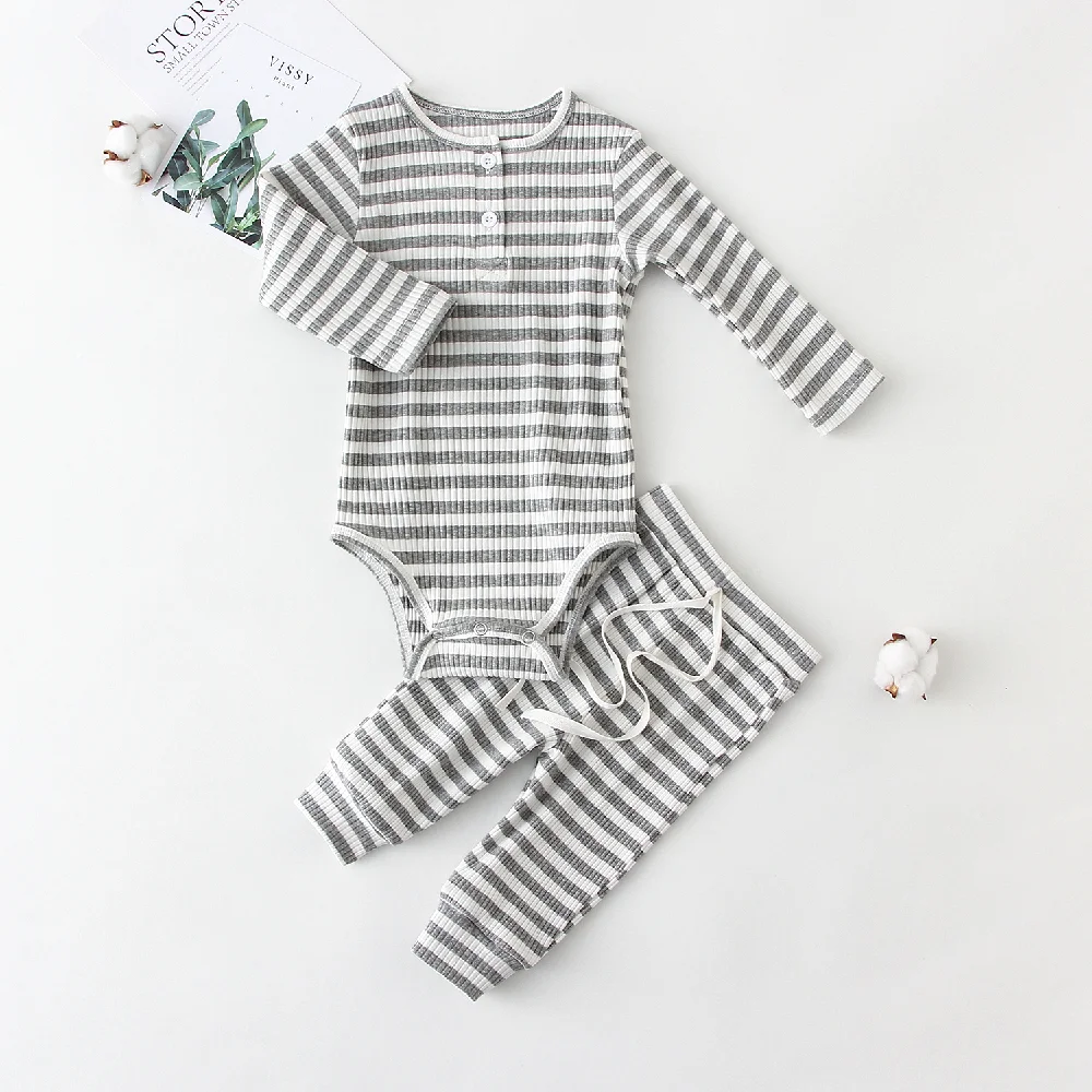 Комбинезон для новорожденных мальчиков + повседневные штаны, одежда на лето и весну для маленьких мальчиков, комплект из 2 предметов для новорожденных, однотонный вязаный комплект с длинным рукавом