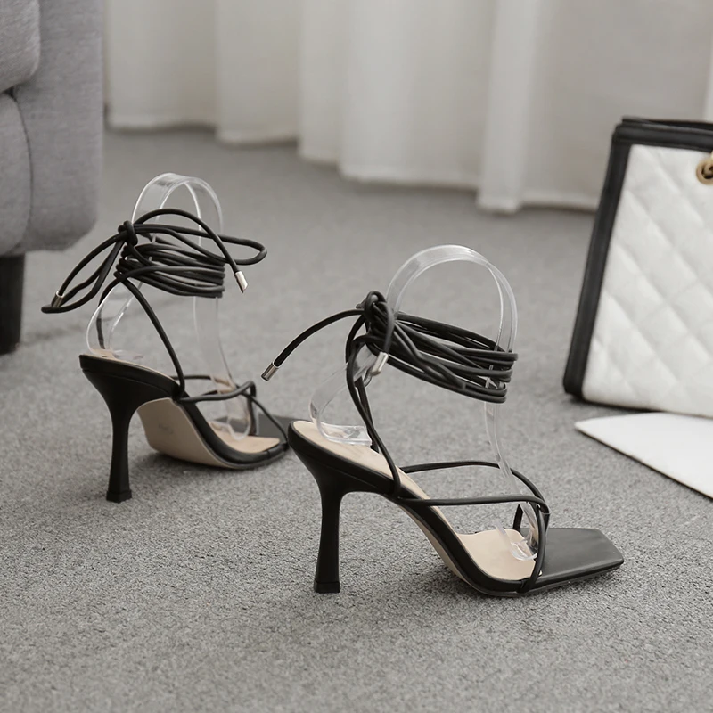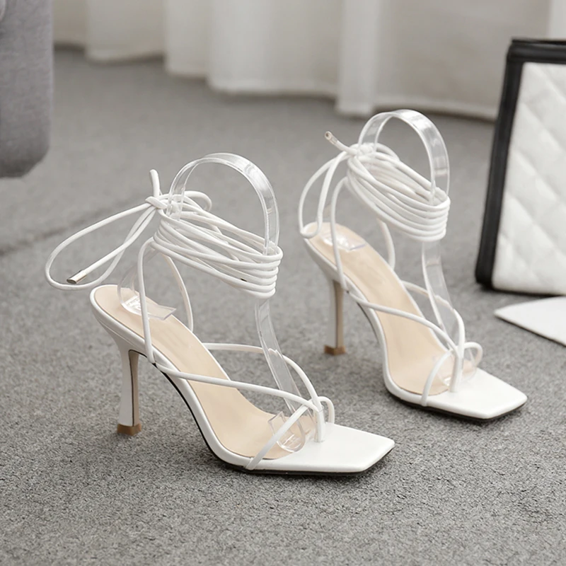 Летние женские босоножки винтажные Классические босоножки на высоком каблуке 10 см с квадратным носком и перекрестными ремешками женская обувь белые и черные размеры 41