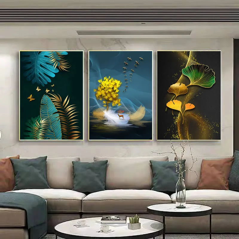 Абстрактные картины-Триптих для гостиной, минималистские Золотые ли...